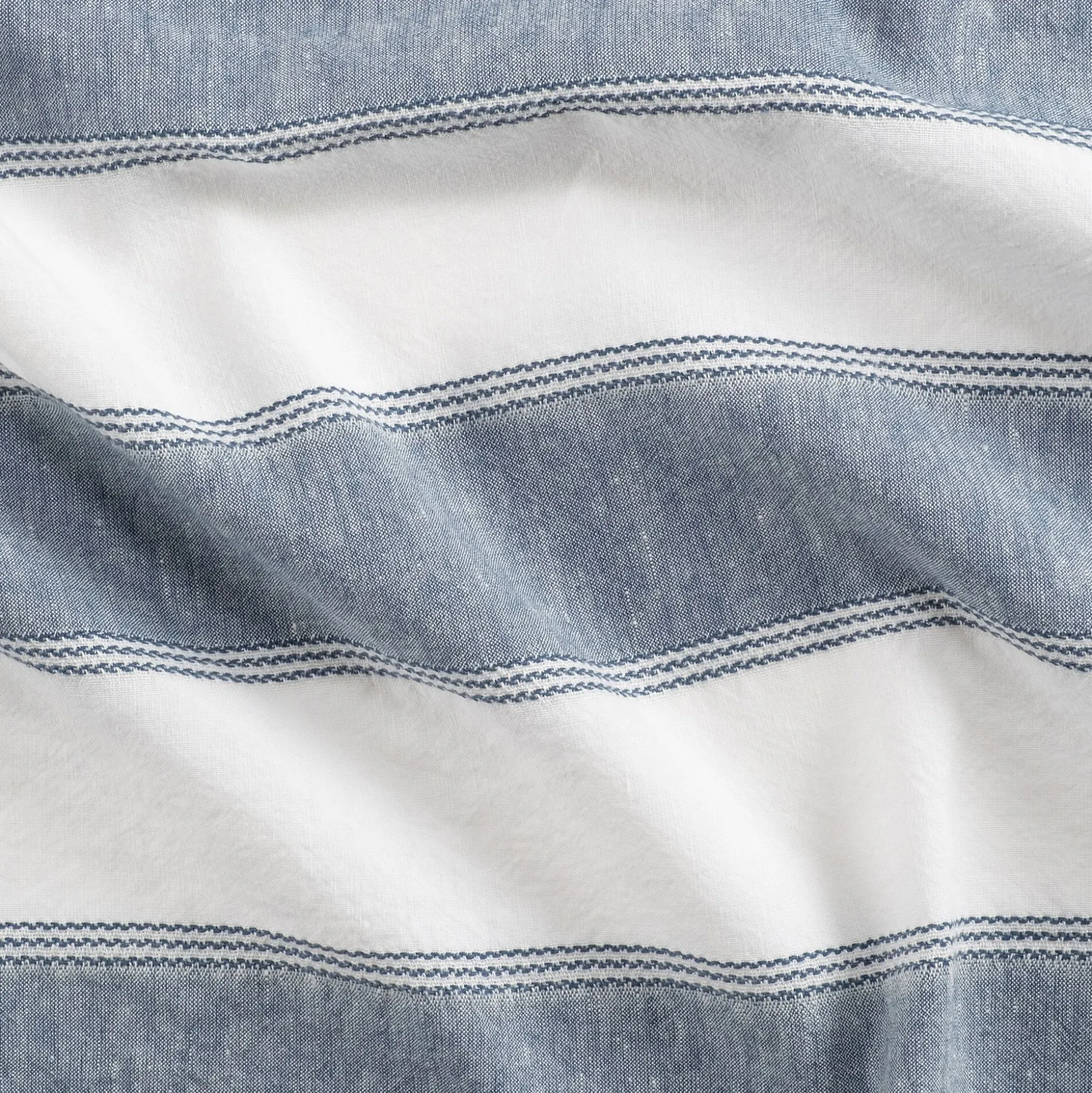 Nappe à rayures bleues en lin et coton 150x250cm – blanc