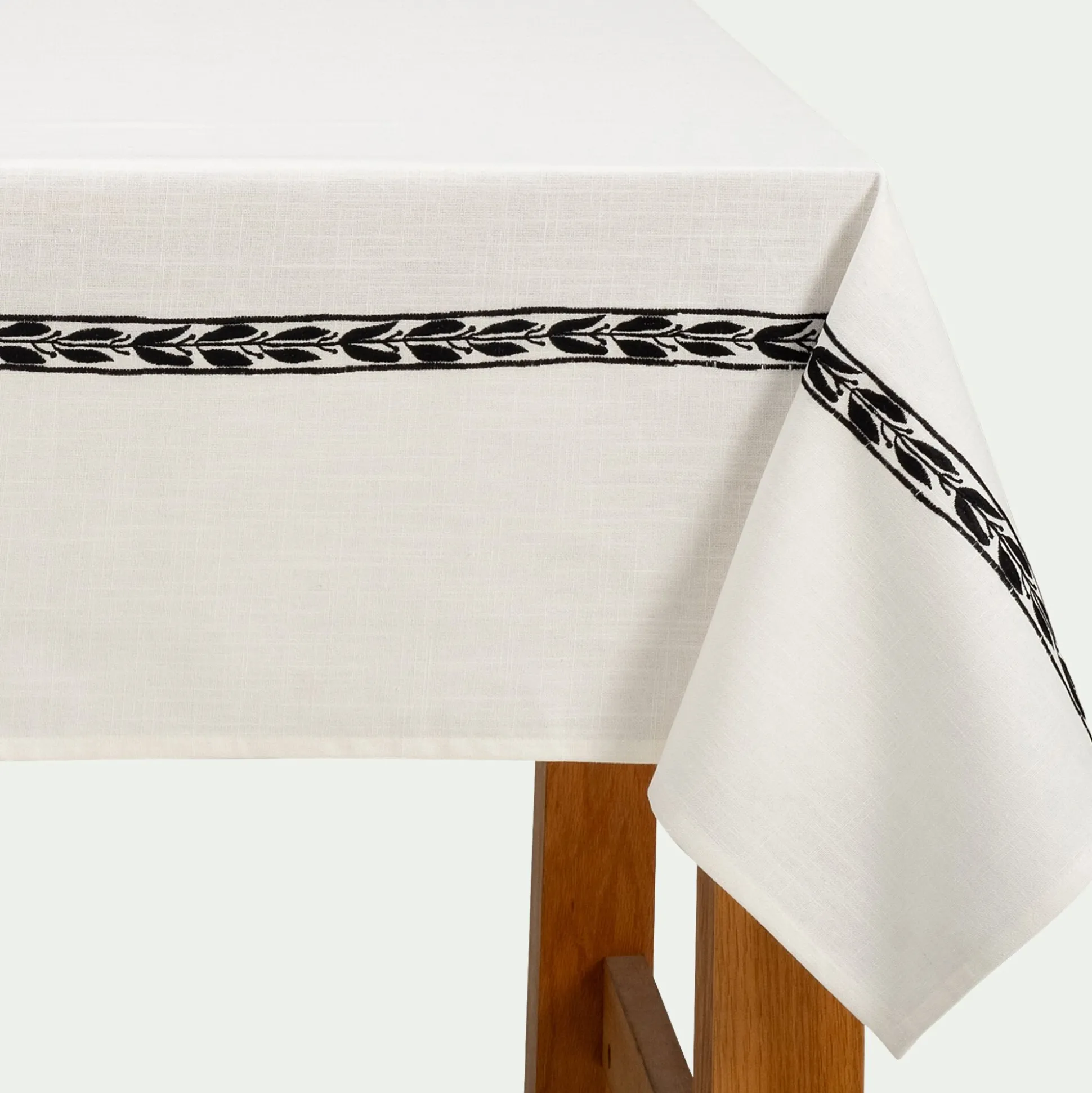 Sublimez votre salle à manger avec notre nappe blanche de 145×250 cm, une fusion parfaite de naturel et d’élégance. Confectionnée avec soin coton, cette nappe offre une protection à votre table tout en ajoutant une touche méditerranéenne avec des motifs grecs. Habillement brodé en noir, ce liseré apporte du contraste et du caractère à cette nappe rectangulaire. Une belle pièce autour de laquelle créer des moments mémorables, doublant ainsi l’intensité de chaque instant.