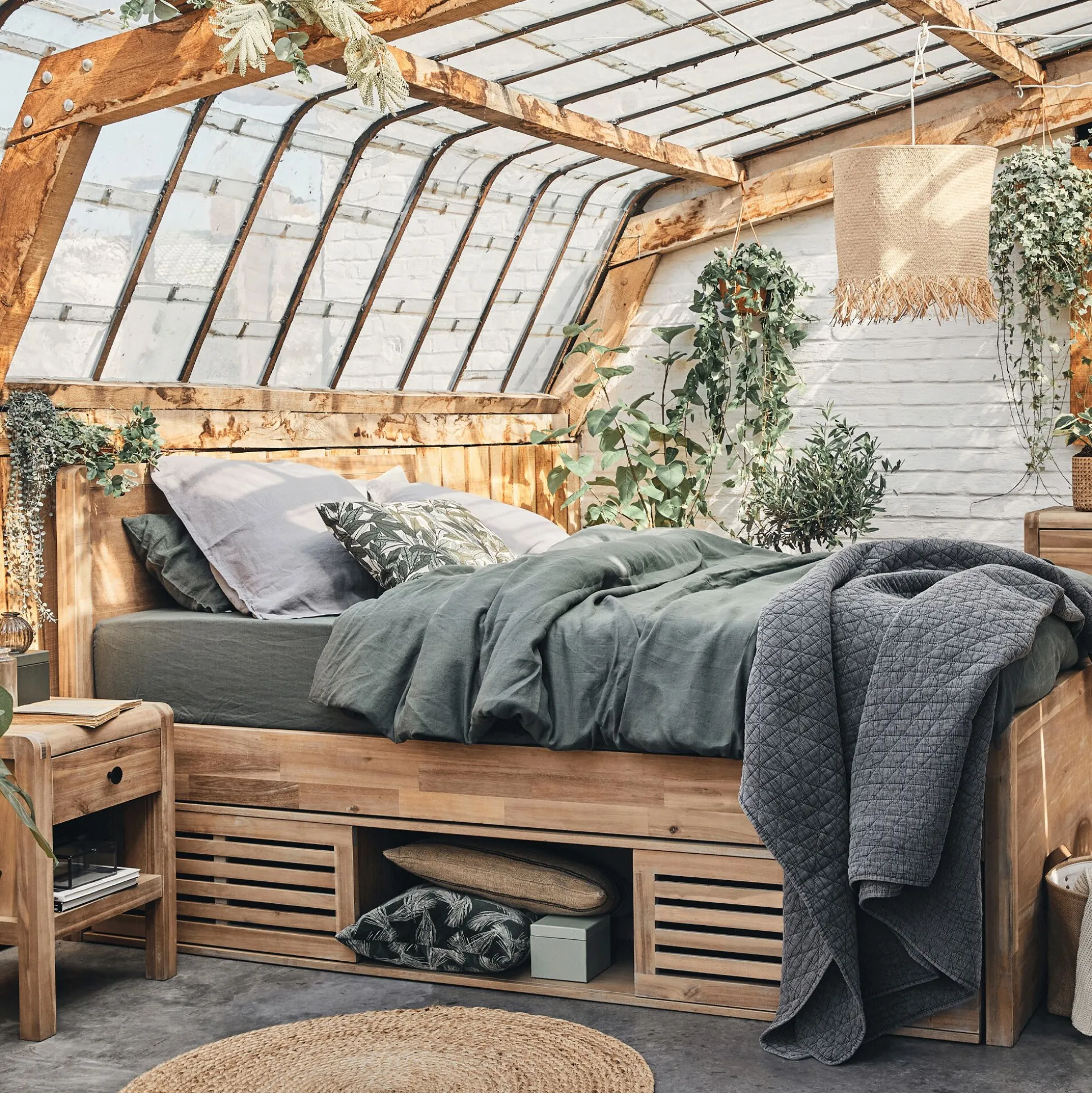 Gaia est une gamme de meubles complète pour la chambre, le dressing et la salle de bain. Fabriquée par des experts de l’ameublement avec des matériaux sélectionnés minutieusement, cette gamme met en valeur le mobilier en acacia massif ce qui lui confère sa grande qualité. Confectionnée en bois certifié FSC, un label qui garantit que le bois est issu de forêt gérée durablement, cette gamme de meubles offre une atmosphère calme et sereine à votre chambre. En bois clair, ils donneront un côté apaisant à votre suite parentale.