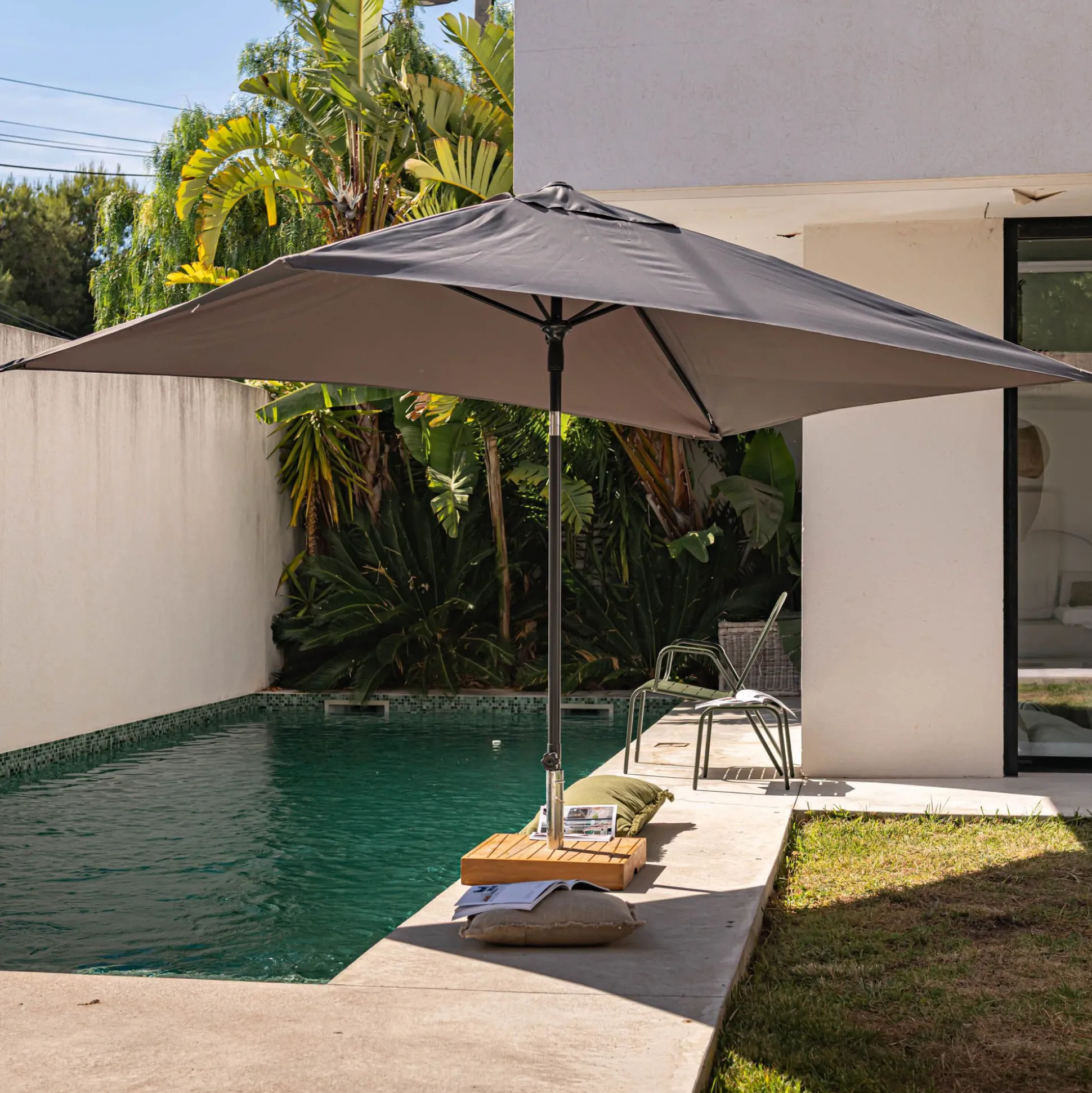 Avec sa toile rectangulaire d’environ 2×3 mètres, ce parasol droit offre une large zone d’ombre, idéale pour profiter du jardin à l’abri du soleil. Son pied en aluminium noir de 180 cm de haut lui confère à la fois robustesse et légèreté, tandis que son tissu gris accentue son allure moderne. Parfait pour une terrasse élégante et fonctionnelle, ce parasol rectangulaire doit être complété d’un pied de parasol pour une stabilité optimale.