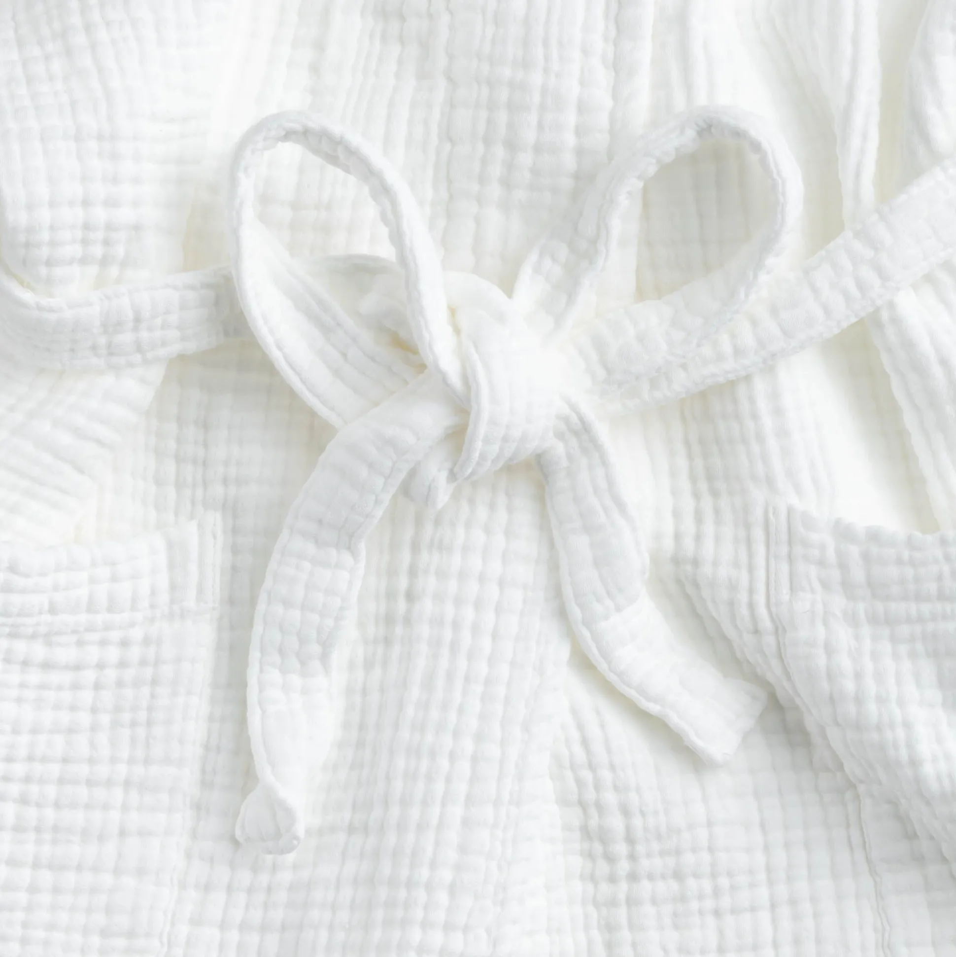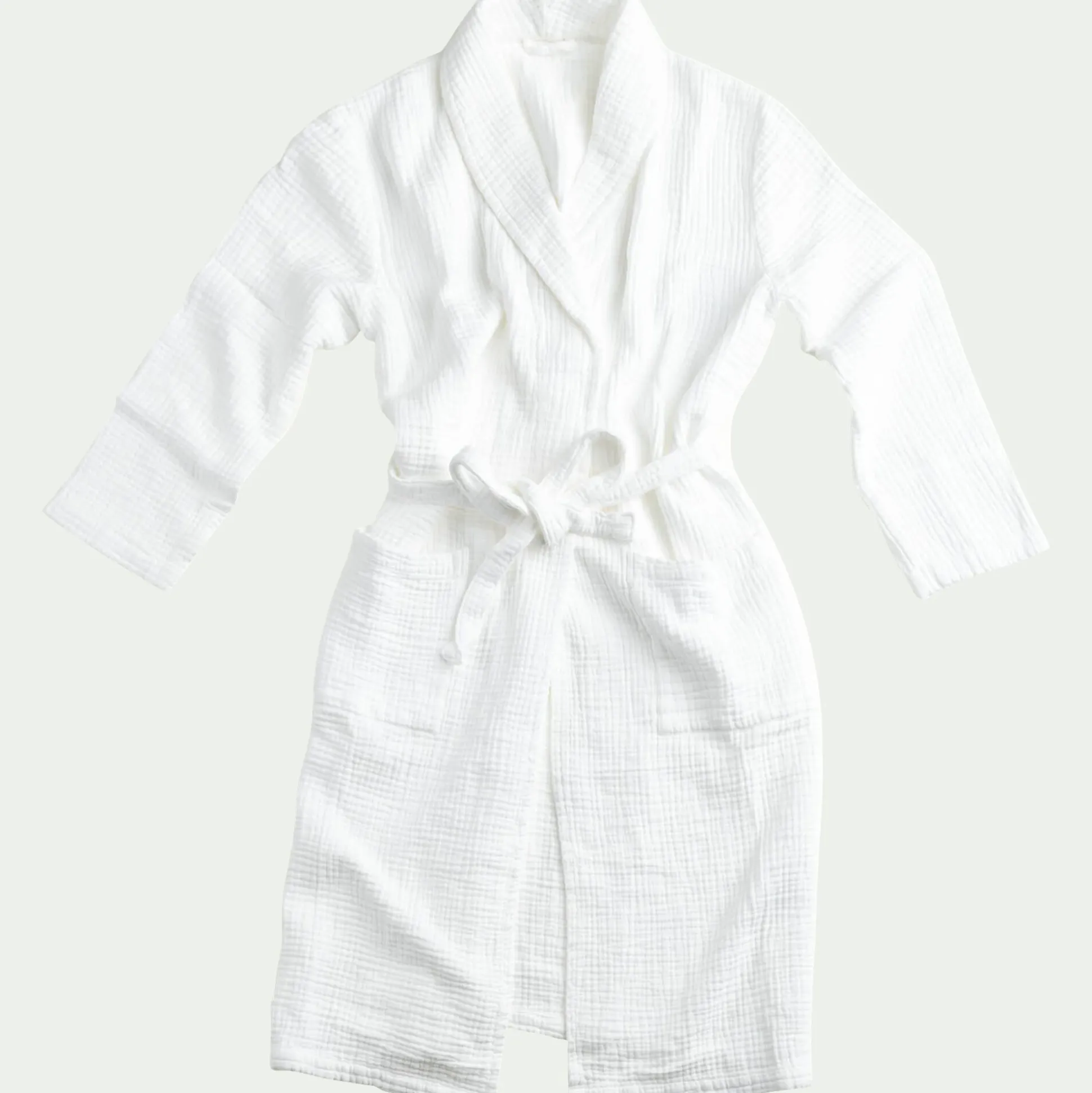 Ce peignoir en quadruple gaze de coton certifié Oeko-tex vous enveloppe de douceur et de légèreté. Son blanc éclatant apporte une touche de fraîcheur, tandis que sa texture transforme chaque moment de détente en un instant de luxe. Avec son col châle, ses poches et sa ceinture ajustable, il romantise votre quotidien en créant une ambiance digne d’un SPA ou d’un hôtel. Idéal après une douche ou un bain, ce peignoir blanc allie confort, raffinement et fonctionnalité pour une expérience de relaxation ultime.
