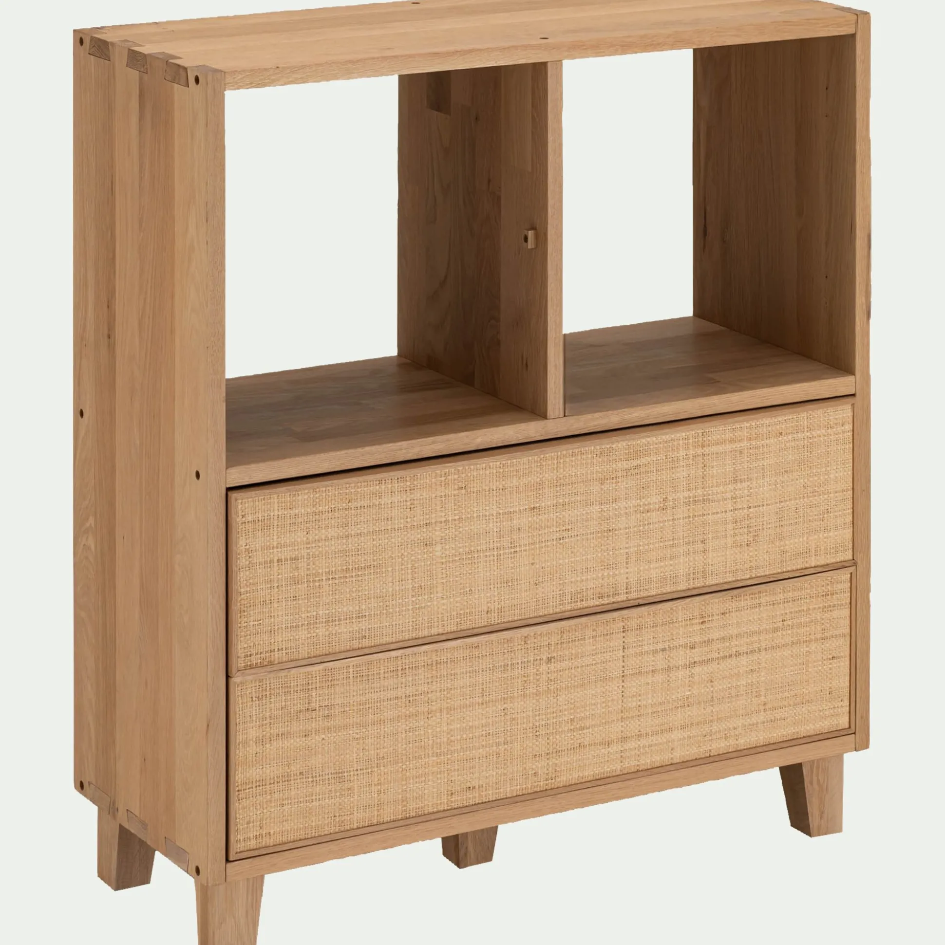 Petit buffet en bois de chêne avec 2 grands tiroirs en raphia – bois clair