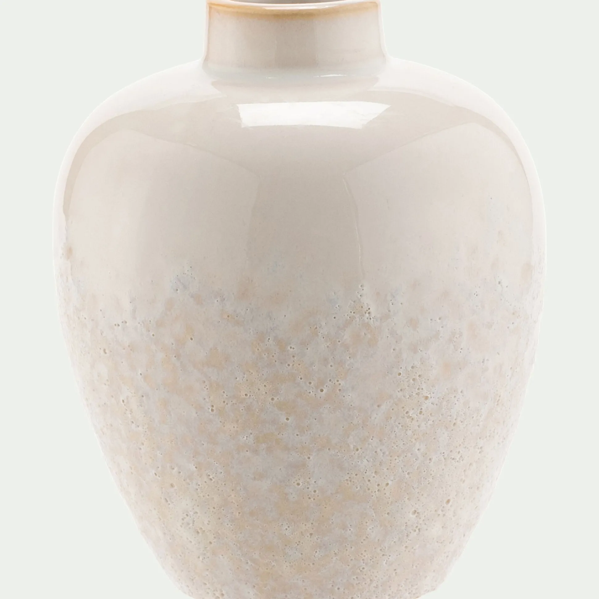 Ce vase en grès blanc apporte une touche d’élégance discrète à la décoration. Inspiré des lignes harmonieuses des vases antiques, il séduit par sa silhouette délicate et sa texture mate, qui lui confèrent un charme authentique. Haut de 12,5 cm, il trouve facilement sa place sur une étagère, une table ou un rebord de fenêtre. Avec quelques fleurs séchées ou simplement posé seul, il devient un véritable objet de caractère, à la fois intemporel et décoratif.