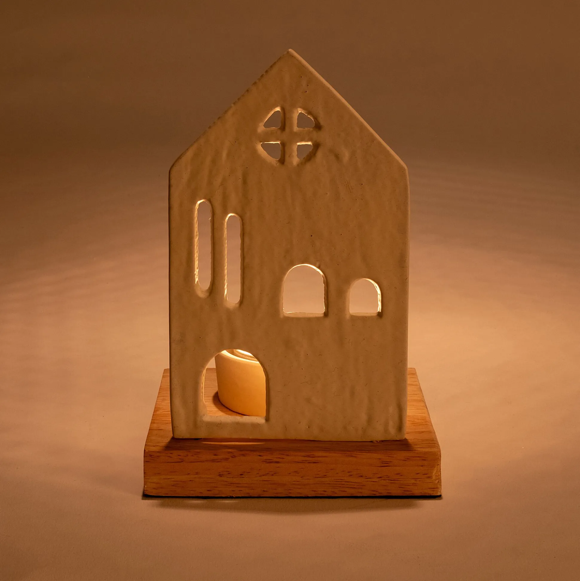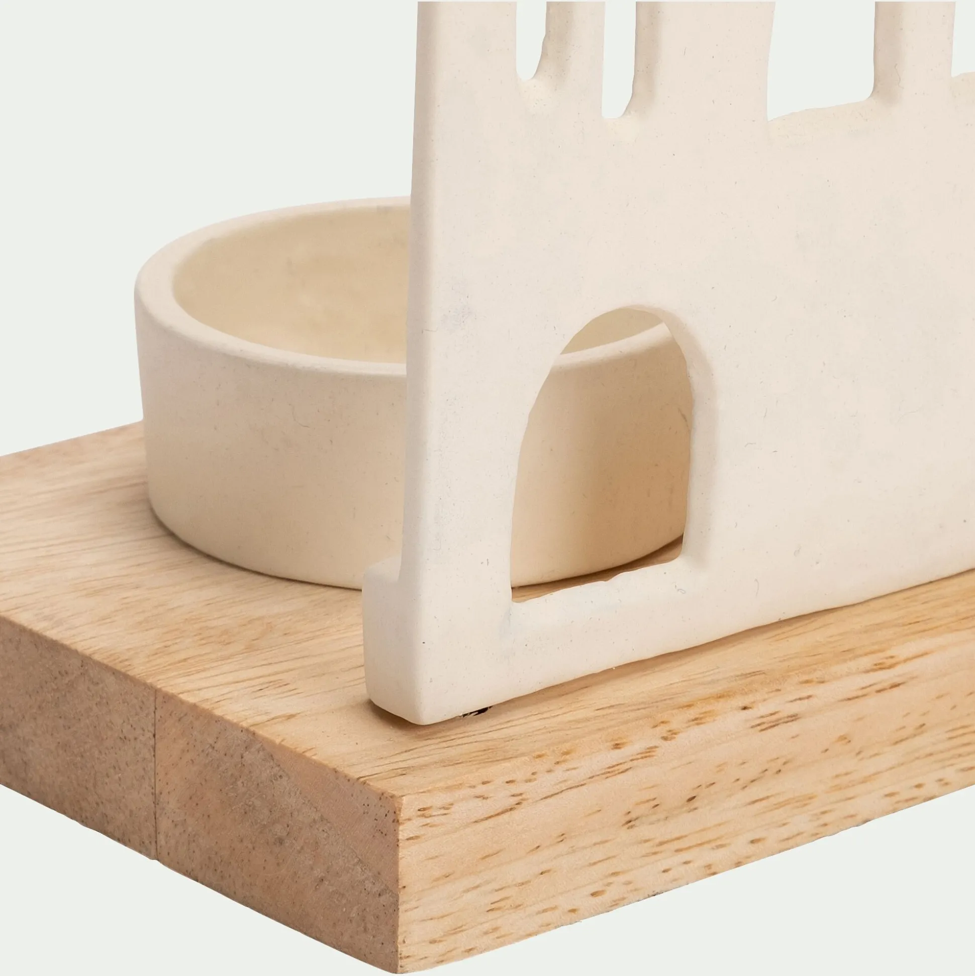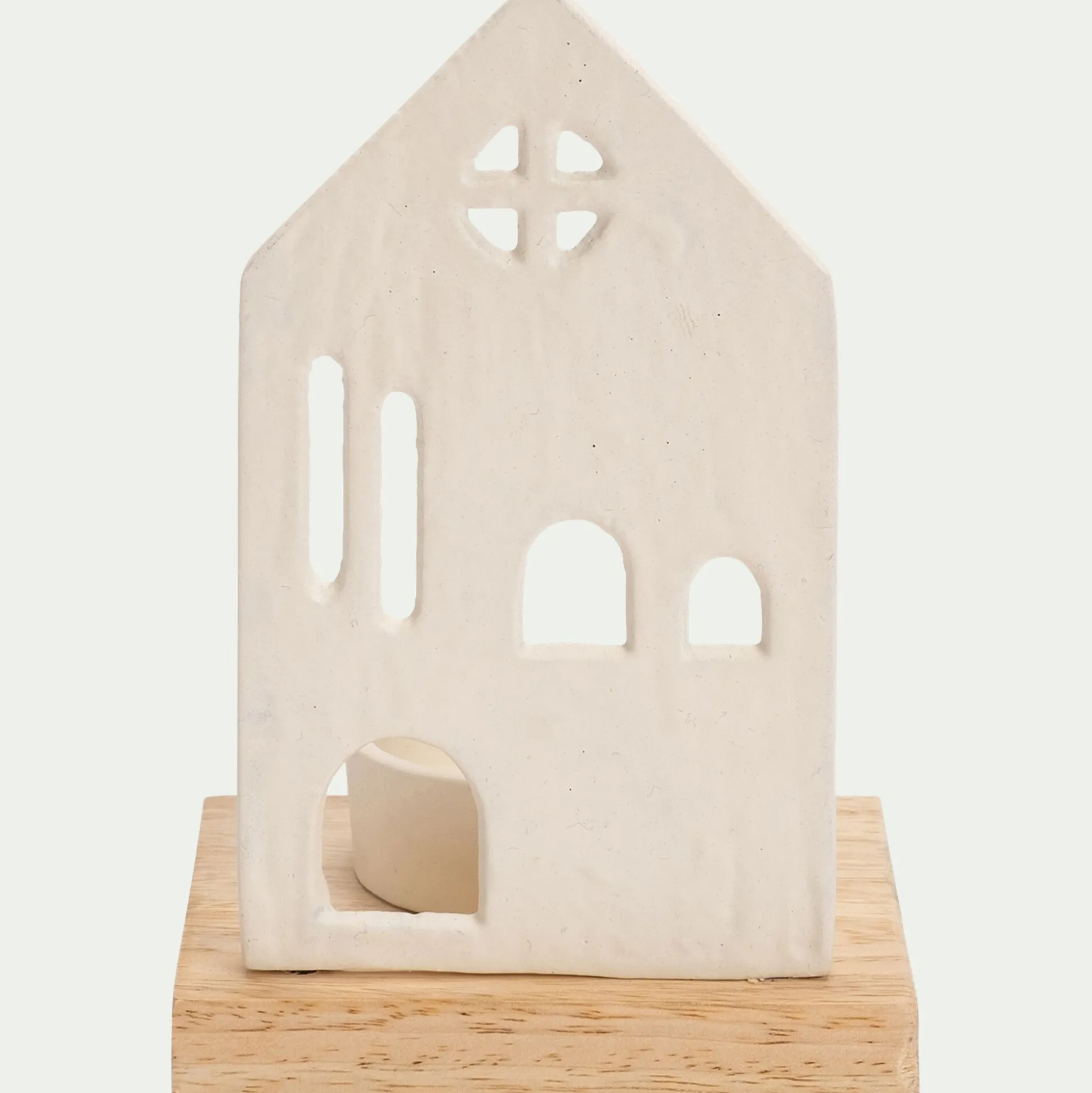 Avec le photophore Tallard, un petit village prend vie au sein de votre foyer. Ce photophore de Noël met en scène une façade de maison, soutenue sur un socle en bois de manguier. Cette maison en aluminium cache un espace pour poser une bougie. Une fois celle-ci allumée, la maison prend vie. La porte et les fenêtres filtrent une lumière chaleureuse, comme si les habitants de cette demeure s’activaient à l’intérieur. Une belle décoration de Noël pour passer des fêtes féériques et conviviales.