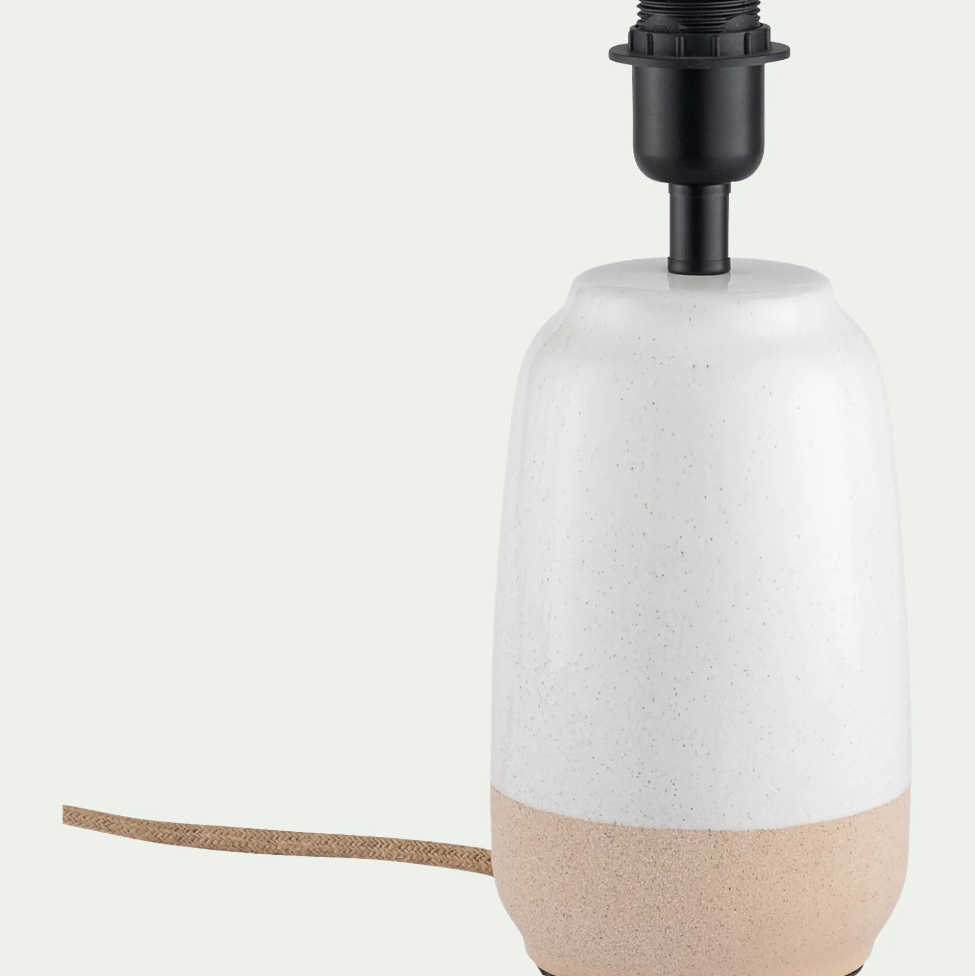 Le pied de lampe en grès Youri allie douceur et élégance avec ses courbes arrondies et son design bicolore beige et blanc subtilement moucheté. Électrifié et compatible avec une ampoule E27 (non incluse), ce pied de lampe offre une base pour l’abat-jour de votre choix. Sa finition mate et ses nuances naturelles apportent une touche zen et moderne, parfaite pour adoucir l’atmosphère d’un salon, d’un bureau ou d’une chambre.