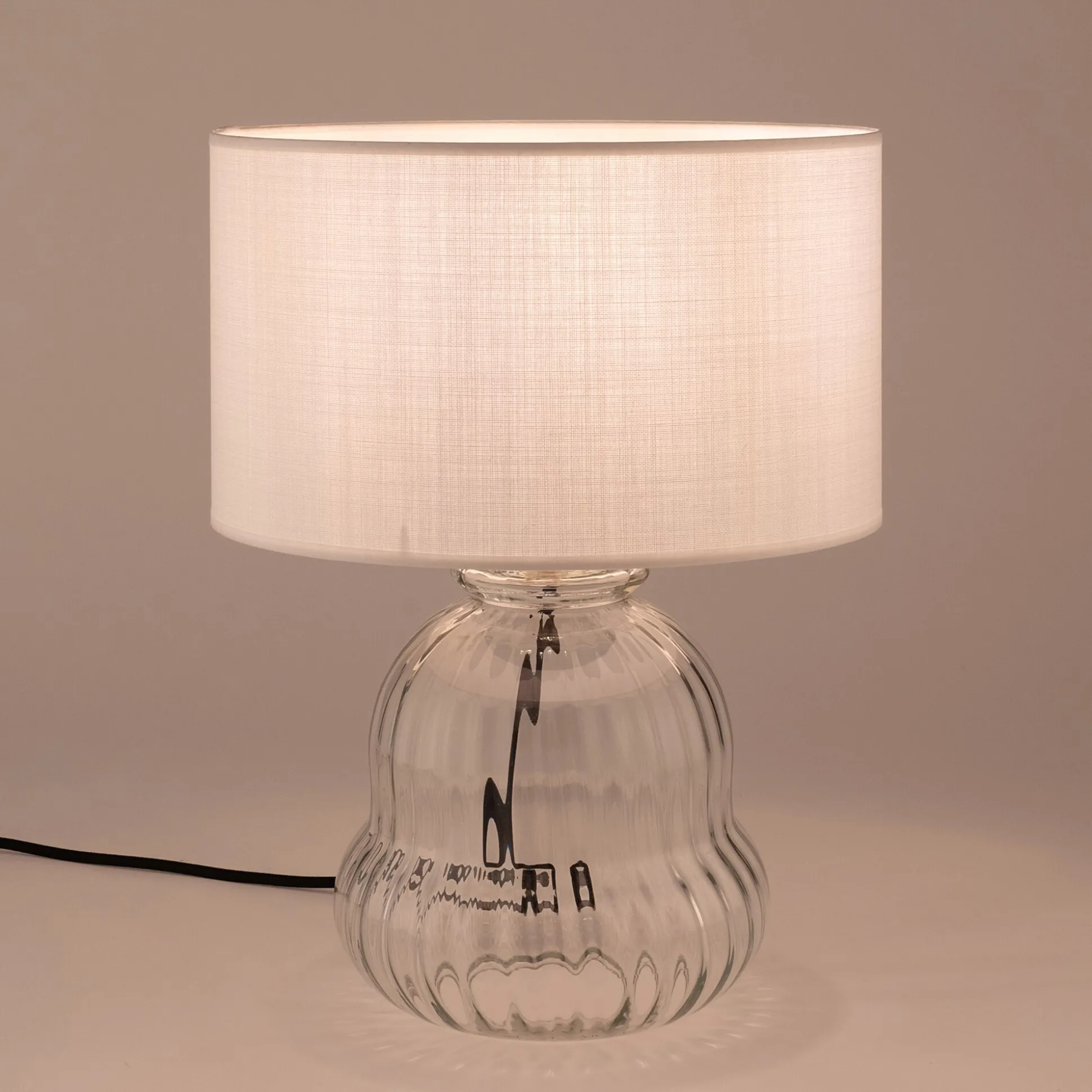 Ce pied de lampe électrifié en verre transparent se distingue par son design élégant et organique. Sans abat-jour, il laisse libre cours à la créativité pour le compléter selon vos envies et créer un luminaire unique et personnalisé. Le verre subtilement strié ajoute une touche de texture et de relief, captant la lumière pour accentuer ses reflets.