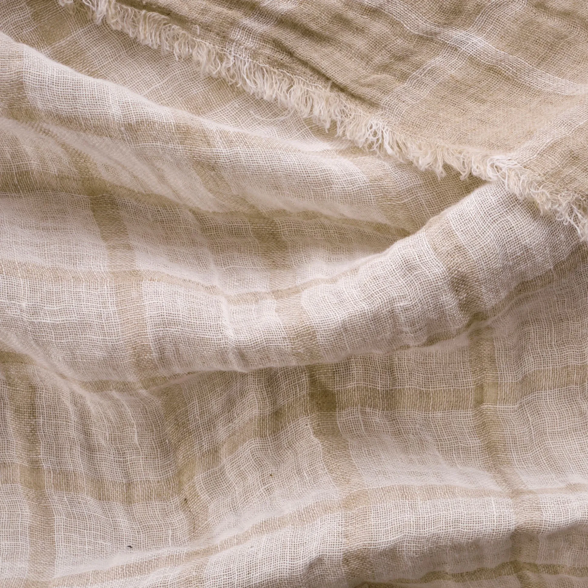 Apportez une touche de douceur à la décoration du séjour avec le plaid Valbel. Ce plaid en lin profite d’un double tissage, une technique qui superpose deux chaînes de couleurs différentes, ici le beige et l’écru. Les nappes de fils s’entrecroisent et révèlent un motif intemporel : le carreau. Ce procédé particulier permet au motif d’apparaitre en positif d’un côté et en négatif de l’autre. Ainsi, ce plaid à carreaux de 130×170 cm est réversible pour s’adapter à vos envies et aux saisons.
