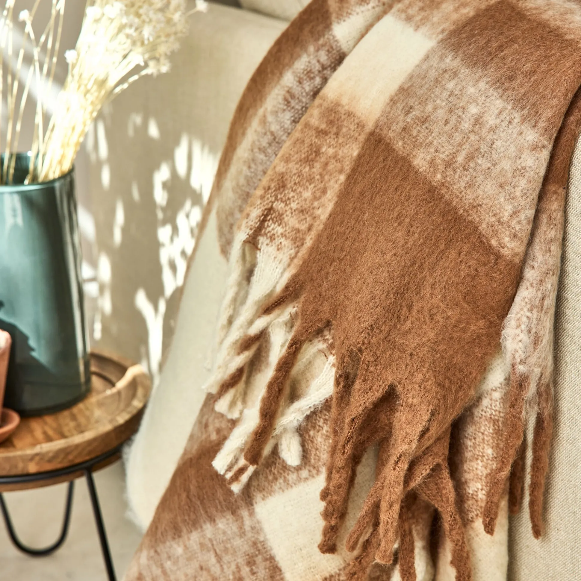 Ce plaid de 130×170 cm enveloppe les moments de détente d’une chaleur bienvenue. Sa matière synthétique douce et moelleuse en fait un allié idéal pour l’hiver. Le motif à carreaux dans des tons marron et blanc crée une ambiance cosy et réconfortante, parfaite pour réchauffer l’atmosphère du salon ou de la chambre. Des franges aux extrémités viennent compléter ce look chaleureux avec une touche d’authenticité.