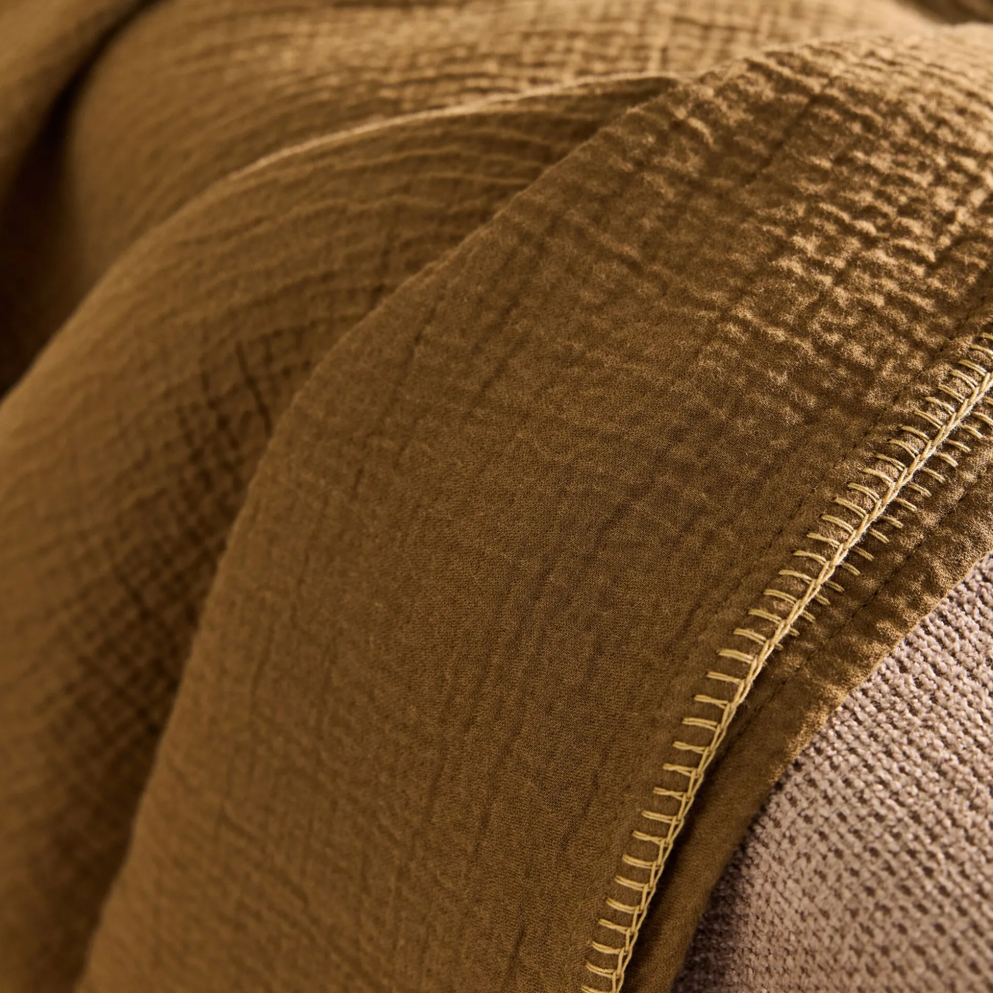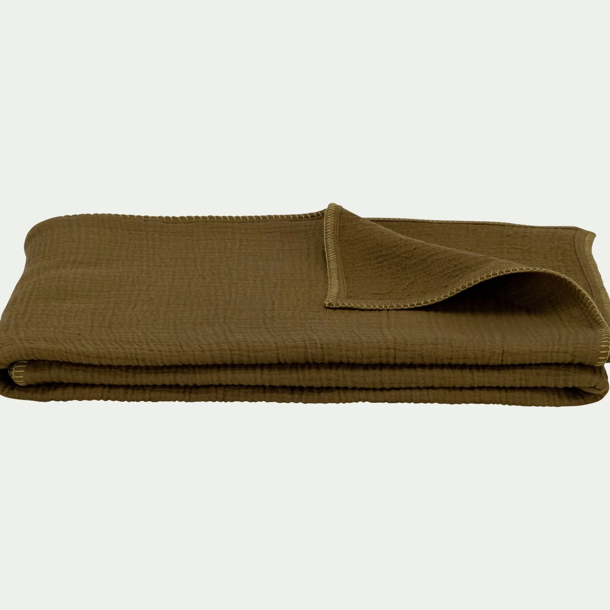 Plaid en triple gaze de coton finition point de cheval 130x170cm – vert