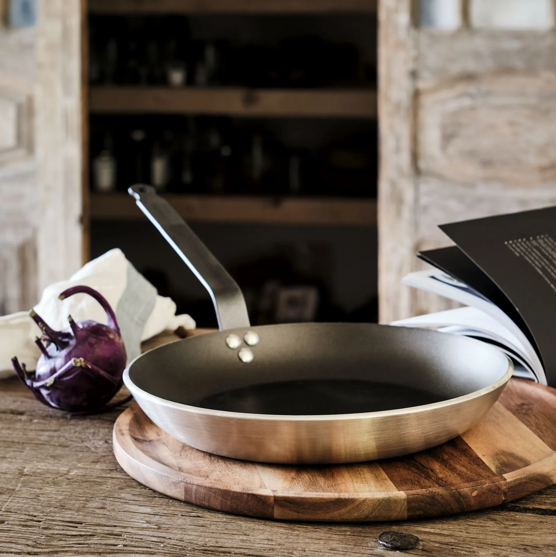 Cette poêle en aluminium de 32 cm de diamètre est un véritable atout à avoir dans la cuisine. Cette poêle en métal profite d’un traitement anti-adhésif, garantie d’une cuisson saine et d’un nettoyage facilité. Cette pôele ronde est idéale pour saisir, griller et dorer vos aliments. De qualité professionnelle, cette poêle anti-adhésive présente une « coupe lyonnaise » qui se caractérise pas la rondeur des courbes. Les aliments peuvent ainsi facilement glisser de la poêle à l’assiette. Cet ustentile est compatible avec tous feux dont induction.