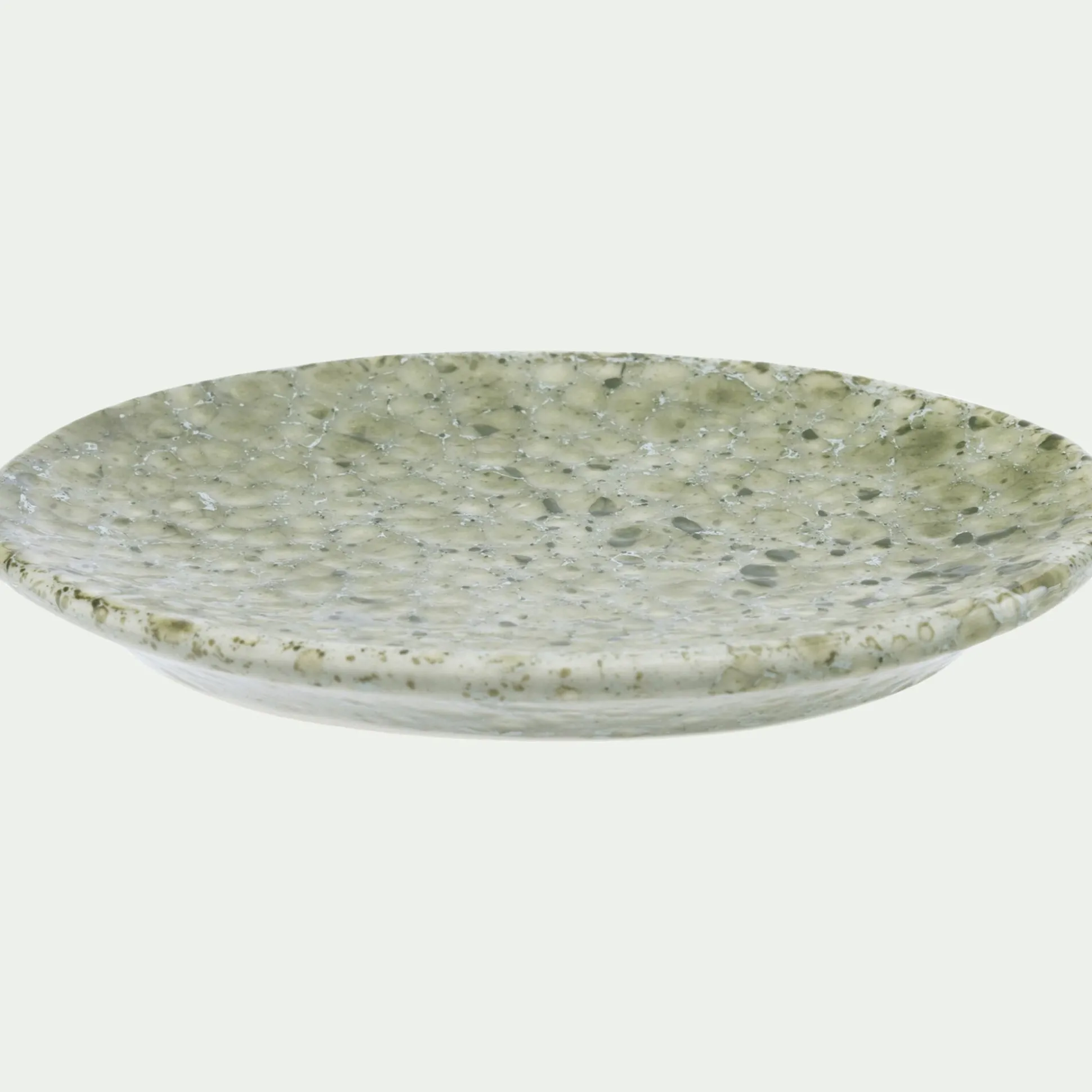 Indispensable dans la salle de bain, le porte-savon permet d’exposer proprement un pain de savon de Marseille. Légèrement creux, il retient l’eau et laisse le lavabo parfaitement propre, avec une touche de couleur décorative. Fabriqué au Portugal, ce porte-savon vert met en valeur la matière iconique de ce pays chaleureux : la faïence. Cette céramique offre un aspect délicat et raffiné, ici avec un motif inspiré du terrazzo.