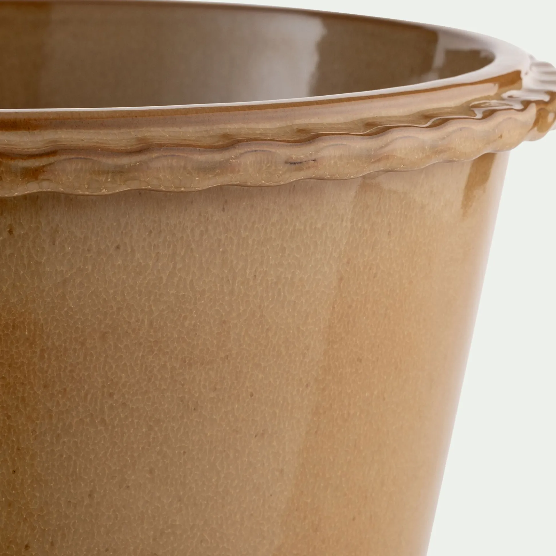 Le pot d’extérieur Arudy allie la beauté de la terre cuite à une finition brillante, avec son vernis jaune. Conçu pour être à la fois fonctionnel et décoratif, ce pot dispose d’un trou de drainage, idéal pour être posé directement sur l’herbe ou accompagné d’une coupelle. Fabriqué au Portugal, cette décoration du jardin met en valeur l’esthétique méditerranéenne tout en apportant une touche subtilement colorée à votre jardin, terrasse ou balcon. Un accessoire pratique et élégant pour sublimer vos plantes.