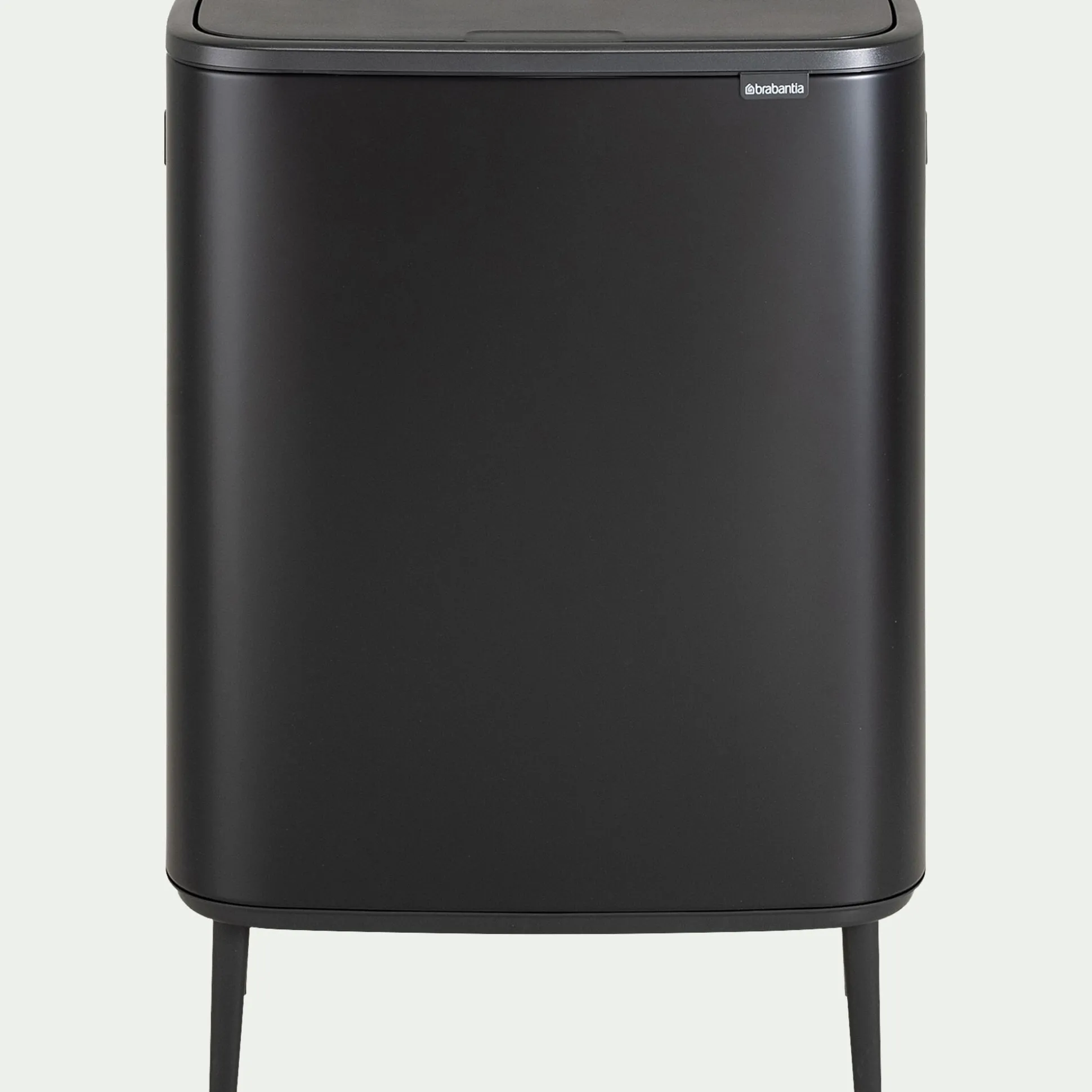 Cette poubelle XXL Brabantia Bo Touch 2×30 litres affiche un superbe design et possède tout ce dont vous avez besoin pour trier facilement vos déchets à la maison. Grâce à la présence de deux seaux amovibles d’une capacité de 30 litres chacun, vous avez la possibilité d’y jeter vos déchets selon leur nature. Cette grande poubelle noire en acier est dotée du système Soft Touch : il vous suffit d’effleurer le couvercle pour l’ouvrir. Un objet qui allie ici design et côté pratique afin de rendre votre quotidien plus agréable.
