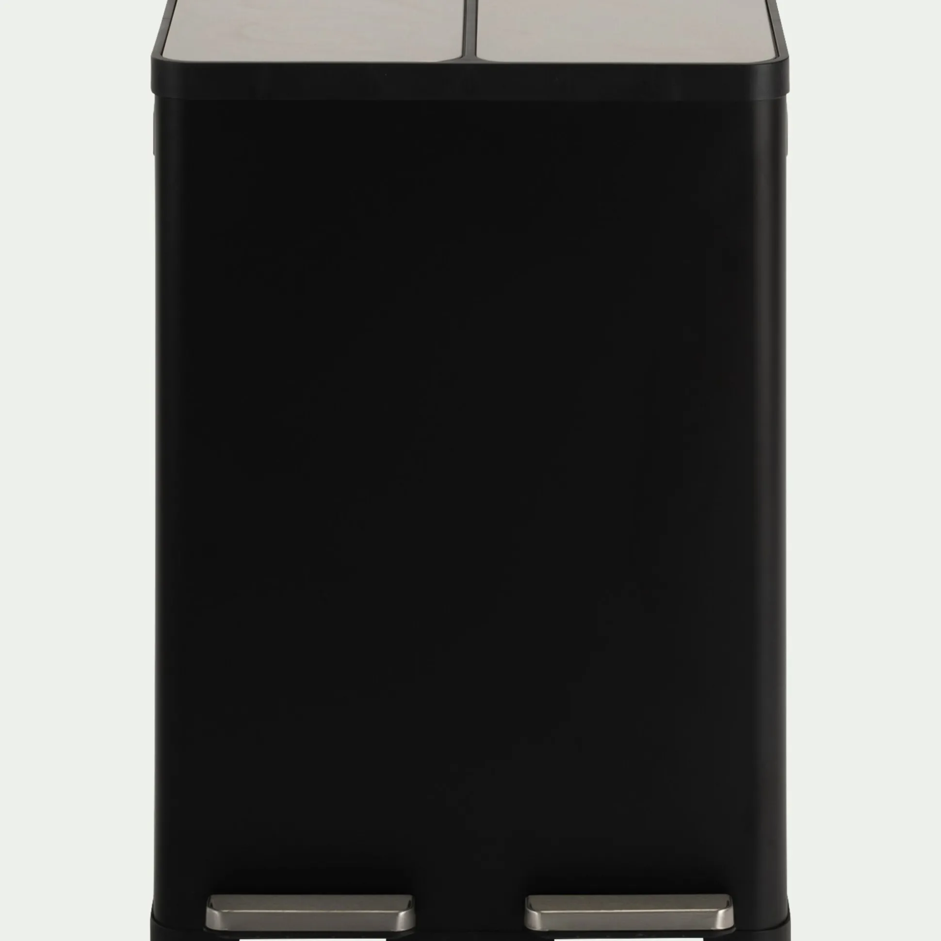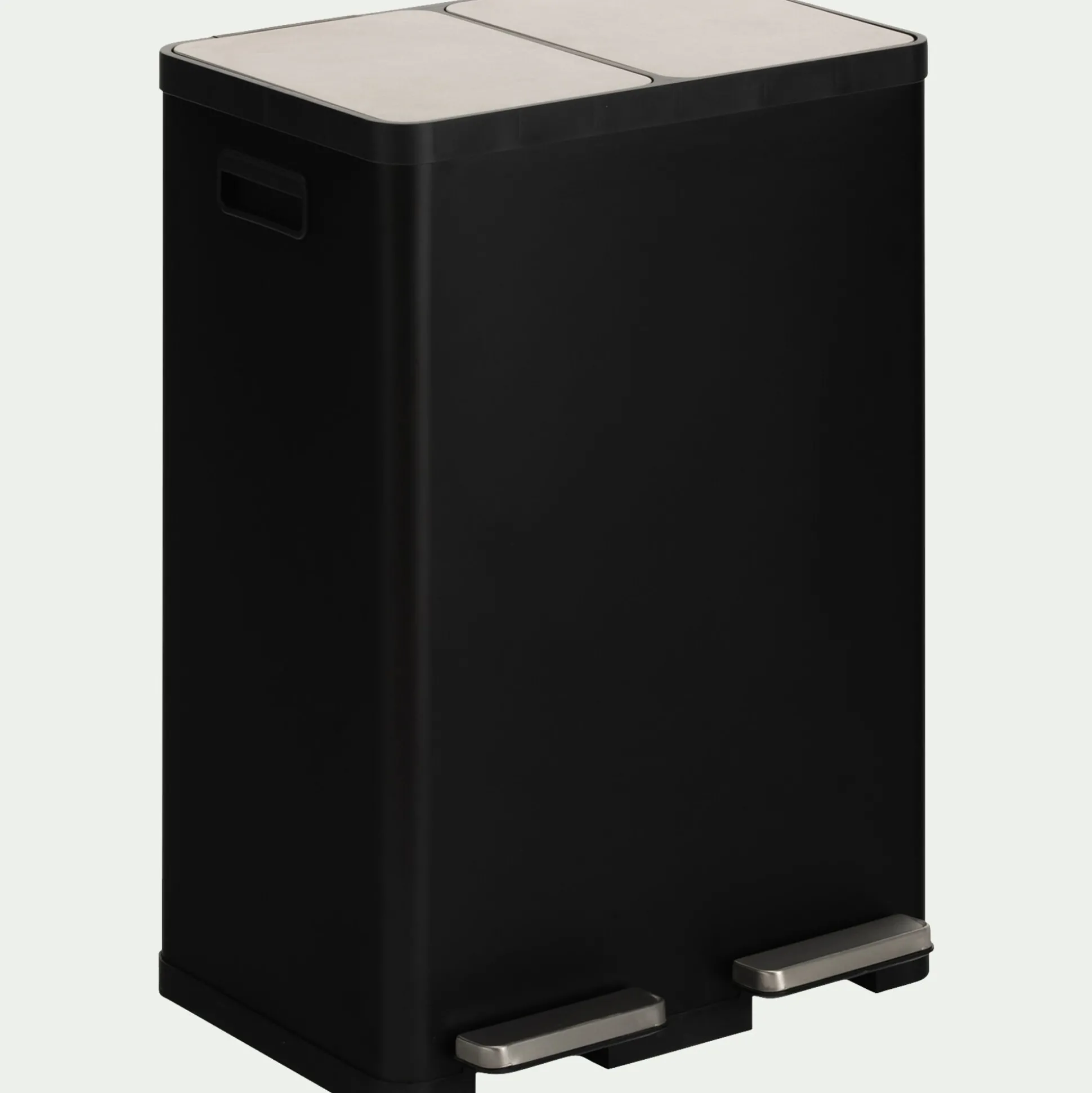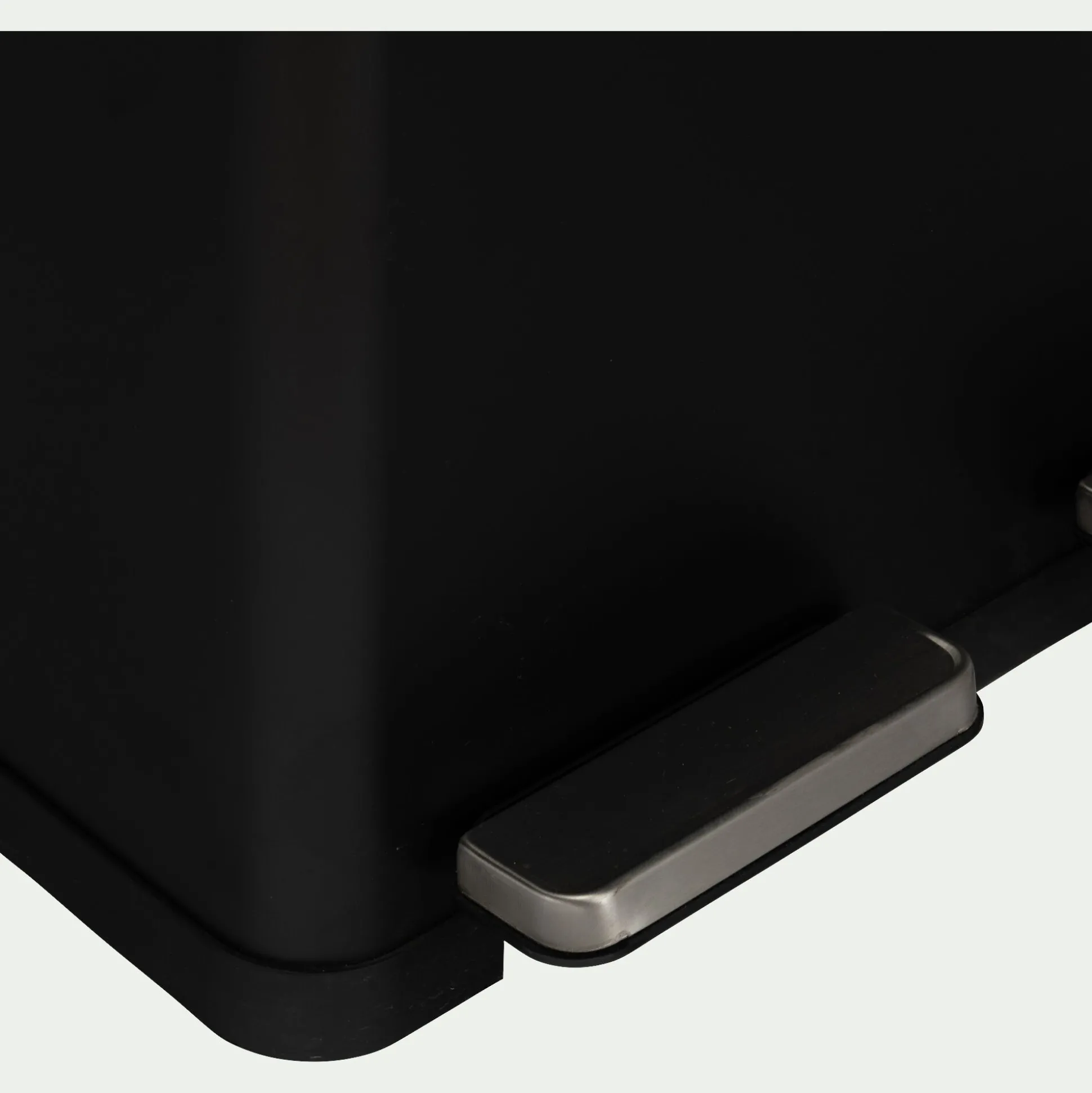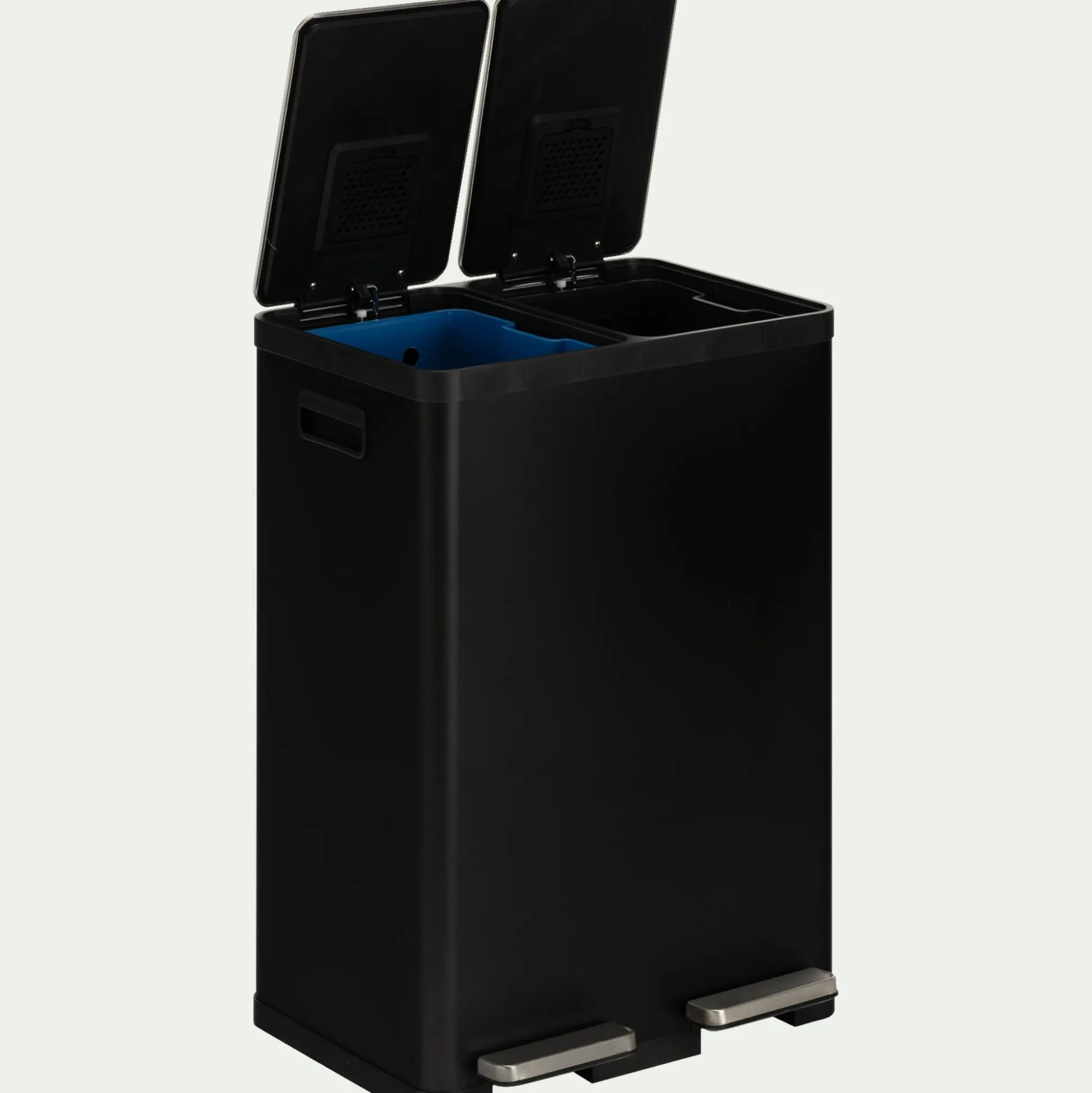 Découvrez cette poubelle de cuisine double qui vous offre une belle contenance pour vos déchets ménagers. Elle propose 2 compartiments de 30 litres pour faire aisément le tri. Cette poubelle s’ouvre facilement avec le pied, vous laissant les mains libres. Une poignée permet de retirer les bacs et vider vos déchets en toute simplicité. Sa couleur noire s’adapte à tout intérieur.