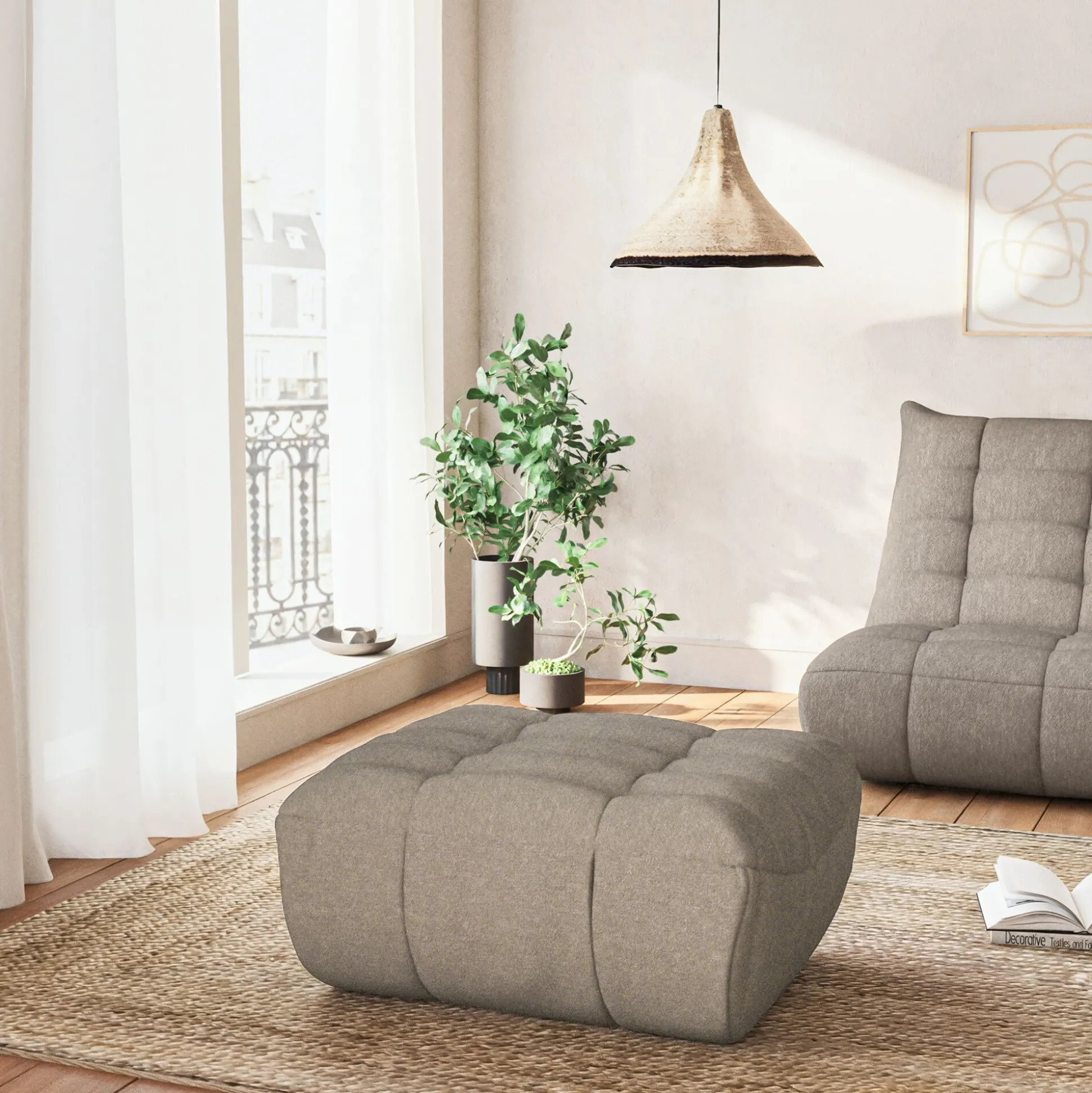 Ce pouf à tout pour plaire. Sa forme aux rondeurs généreuses apporte une ambiance chaleureuse et un confort douillet. Son esthétisme donnera un style tendance à votre salon d’intérieur. Par sa couleur gris clair, il pourra se marier à tous les styles de décoration. Fabriqué par des mains expertes du métier, cet élément est intégralement conçu en Europe. Parce qu’alinea a à coeur de vous satisfaire, cette gamme propose un large choix d’éléments, rendant celle-ci modulable à souhait. Vous pourrez ainsi mixer les tissus, les formes et les couleurs à votre guise et vous permettra de faire varier et faire vivre votre salon à votre image.