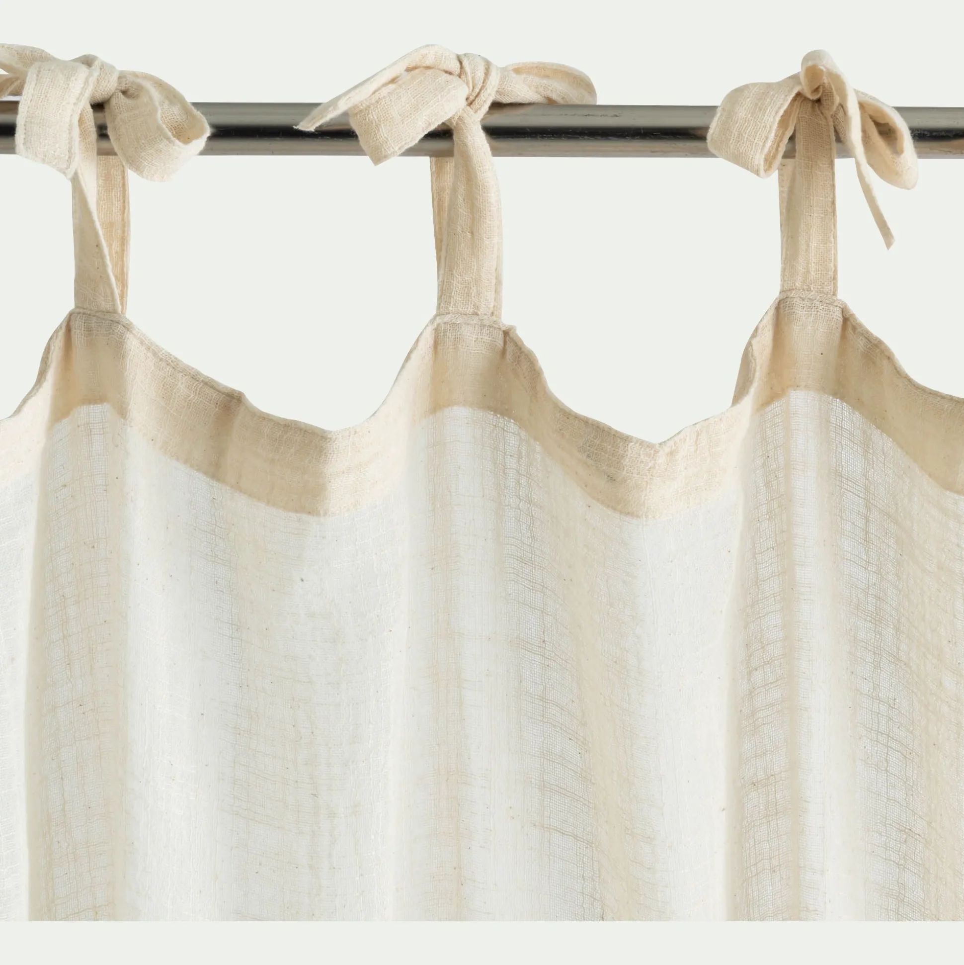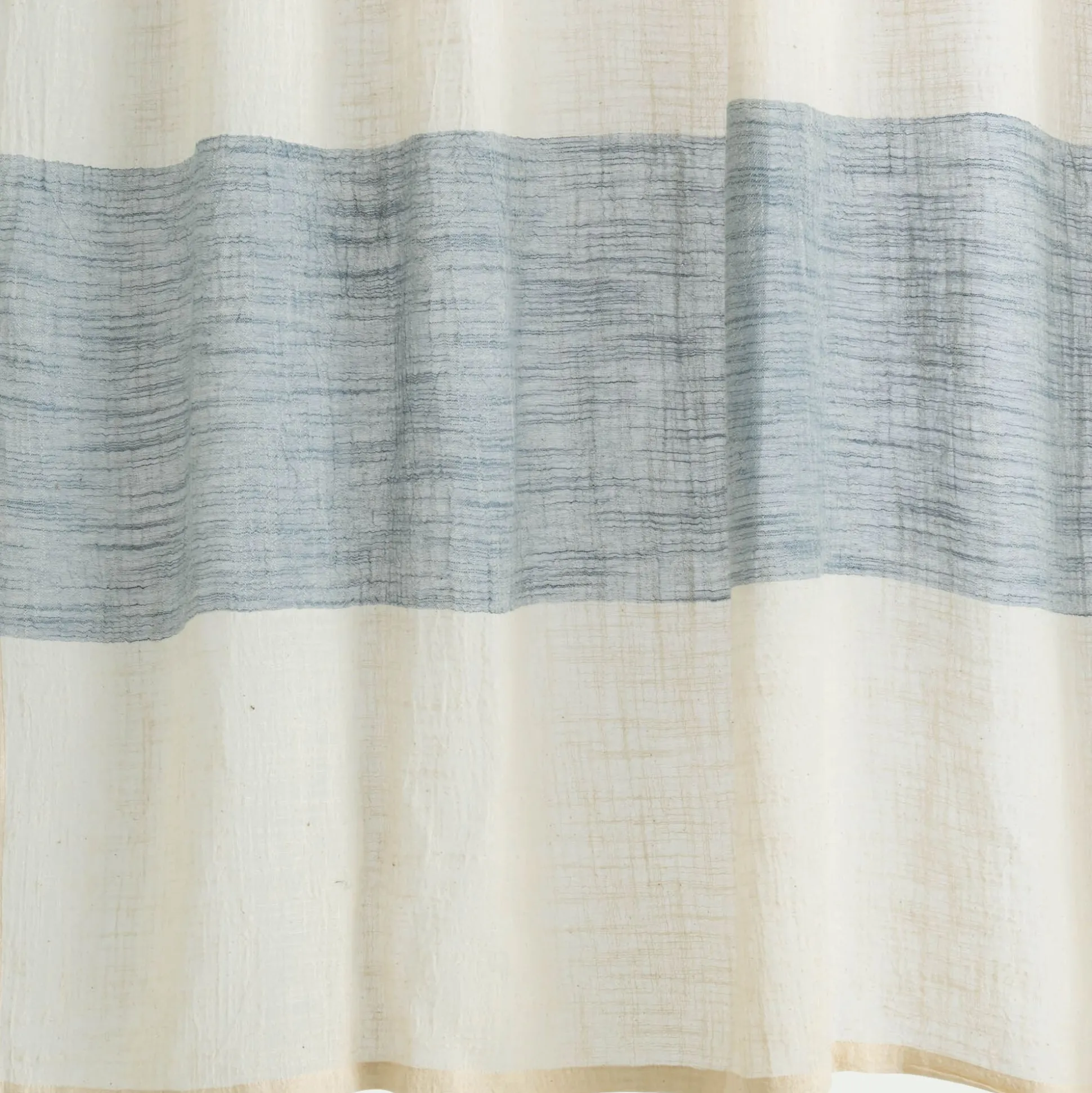 Rideau à nouettes en coton à bande bleue 140x250cm – blanc