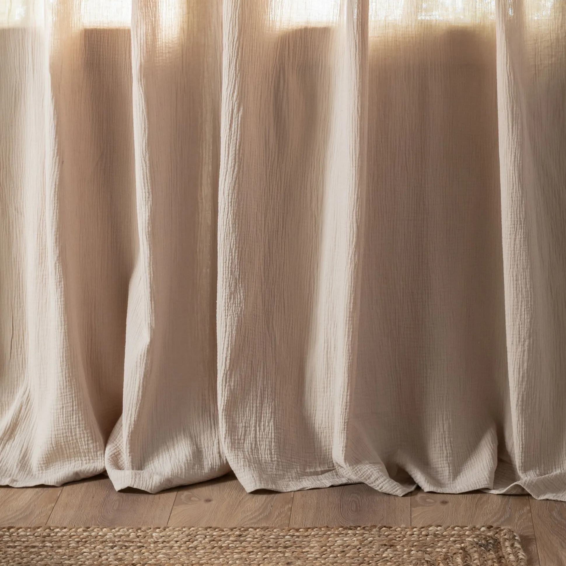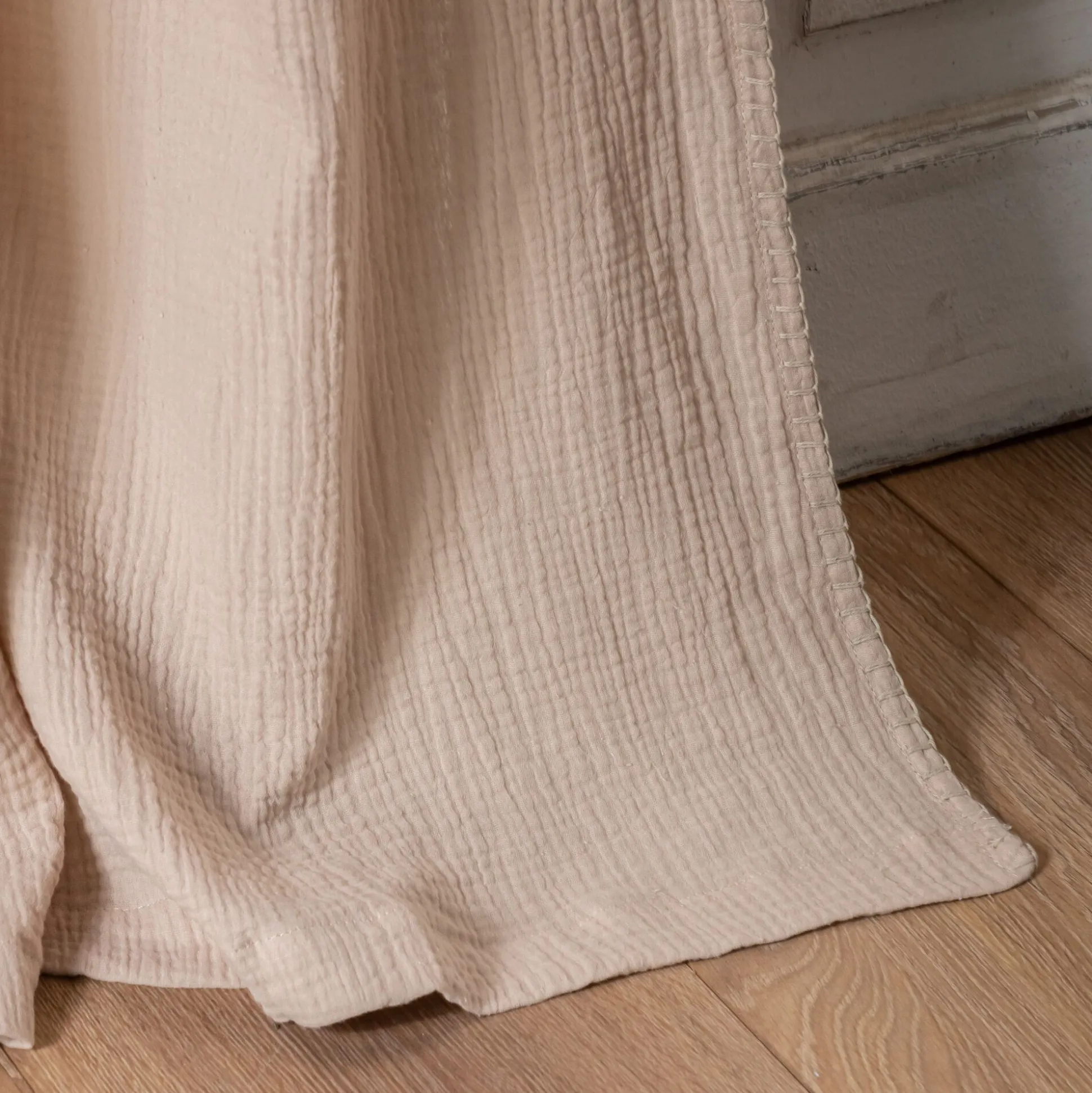 Rideau à nouettes en gaze de coton finition point de cheval 130x250cm – beige alpilles