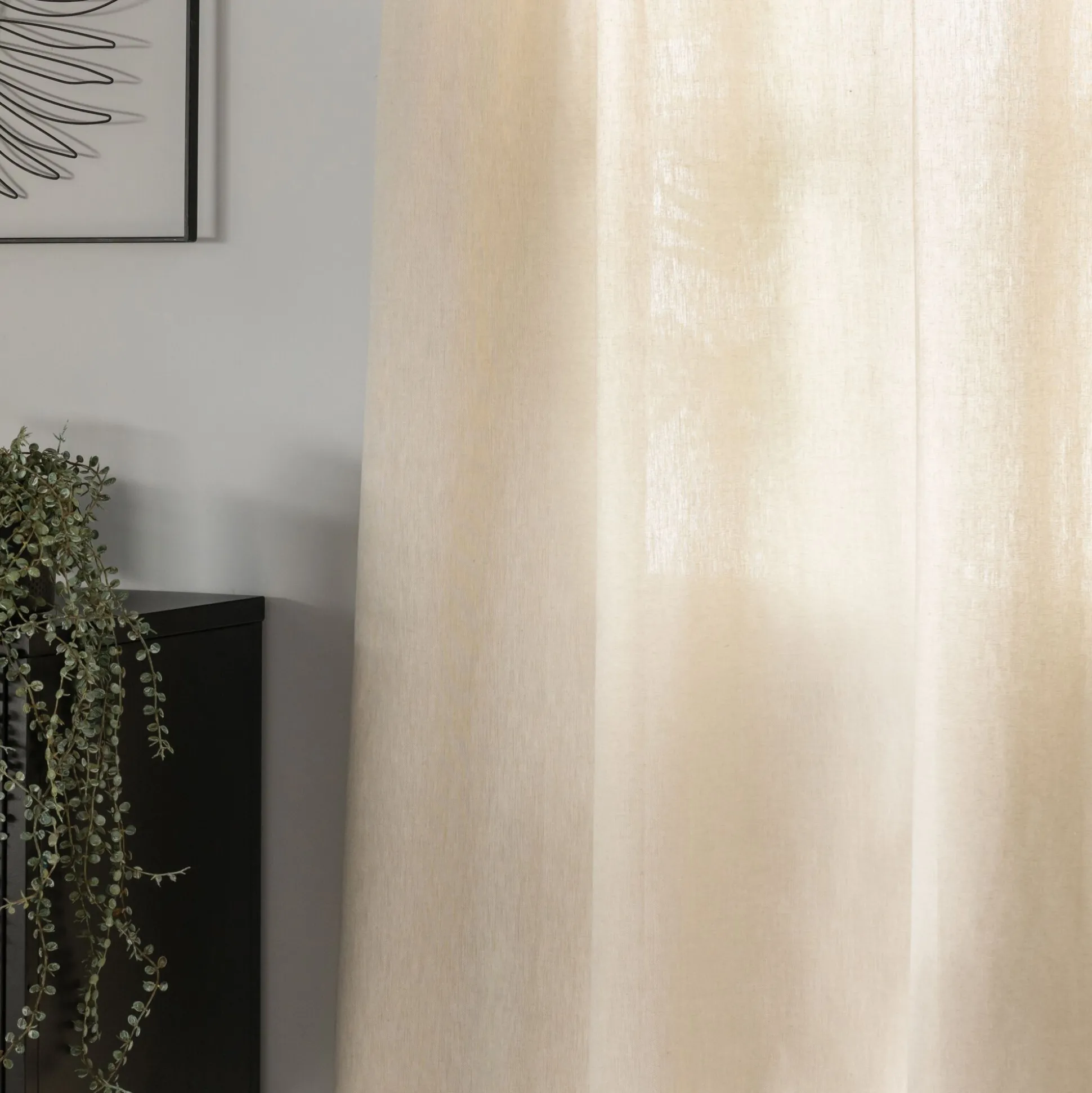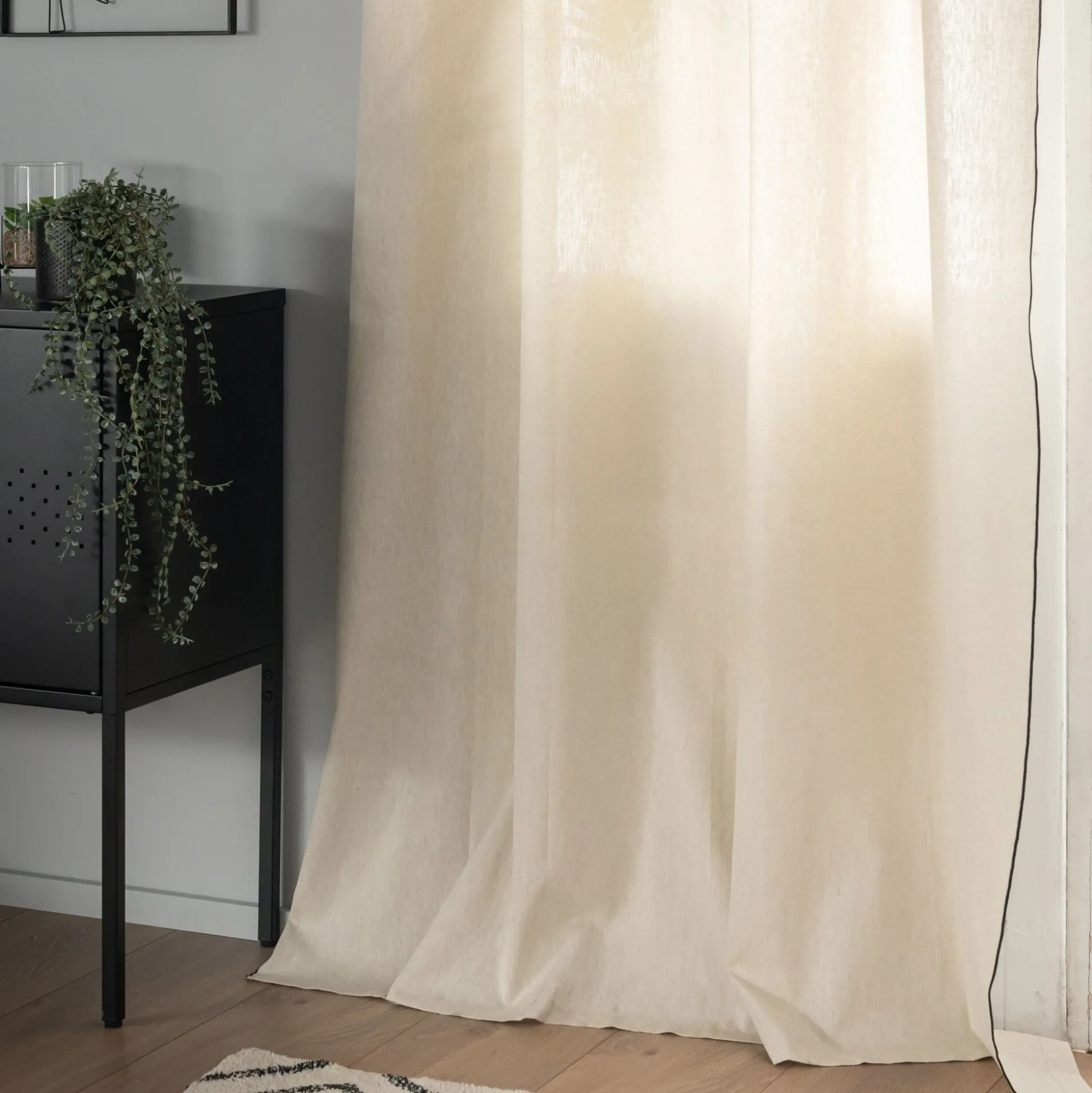 Le rideau Linia est un grand classique. C’est un rideau en coton beige. Sa fantaisie réside dans une finition, un point de bourdon noir de chaque côté qui vient ajouter un subtil contraste. Ce rideau 100% coton habille joliment la fenêtre sans assombrir l’espace.