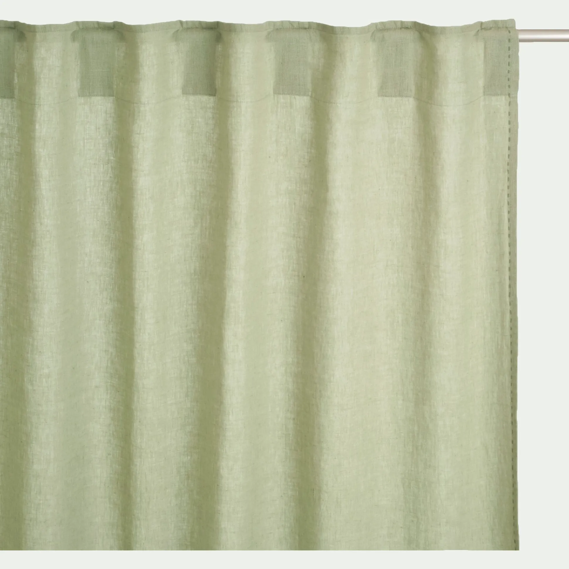 Le rideau Vinon tient son nom d’un agréable petit village au cachet provençal. Niché dans les gorges du Verdon, il se distingue par la nature opulente qui l’entoure. Ce rideau en lin lavé s’installe à vos fenêtres comme un petit bout de ce beau paysage. Tissé en fibres naturelles, ce rideau à passants cachés arbore notre coloris vert olivier, une nuance apaisante qui évoque la nature, mais aussi la douceur de vivre. Ce rideau de 140×260 cm se distingue par une finition réalisée à la main : une surpiqure point plat en double fil qui vient souligner son drapé et apporter une touche d’élégance.