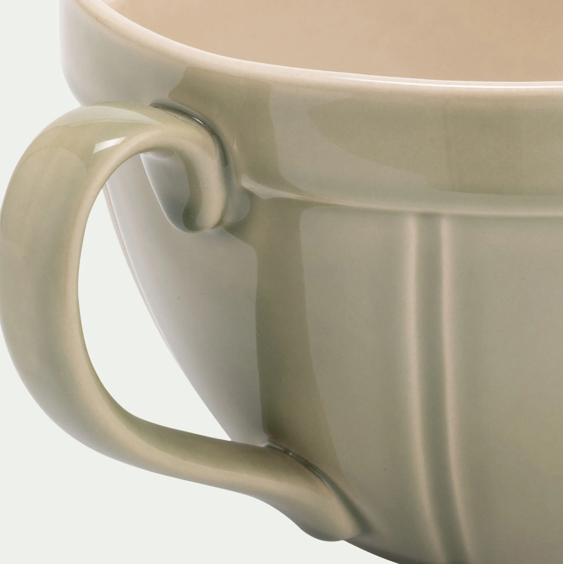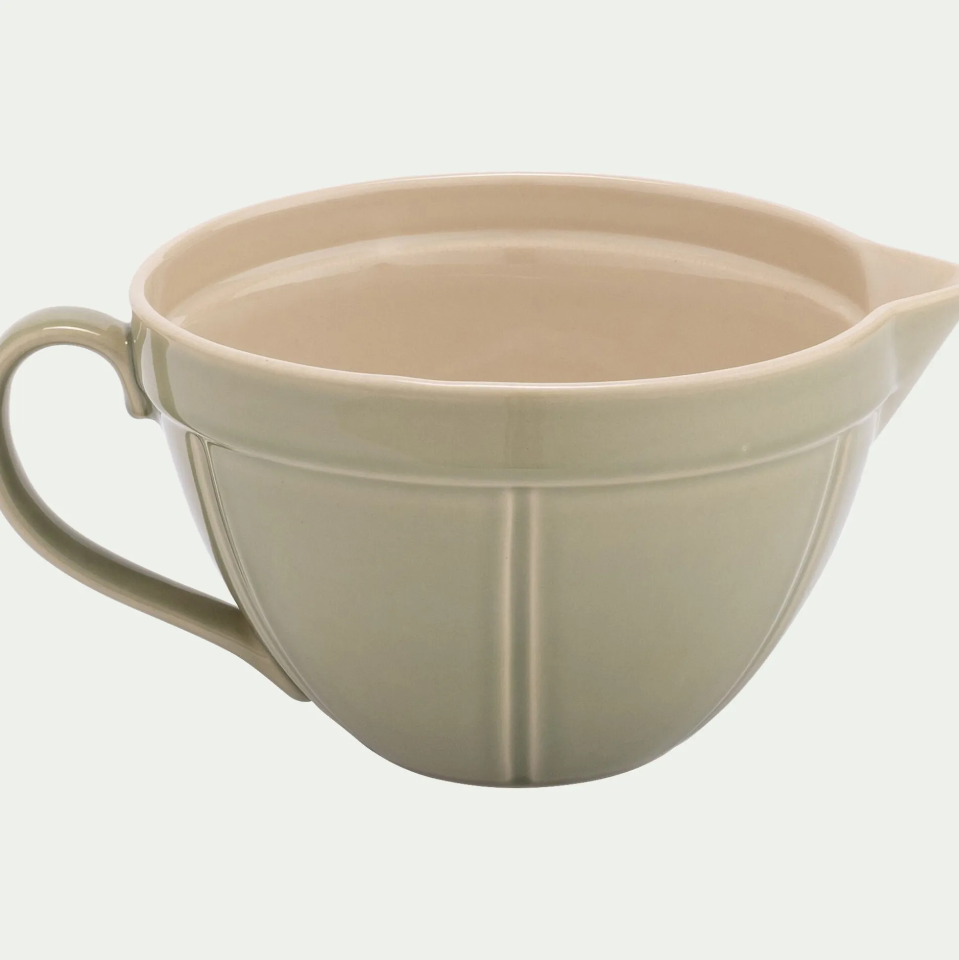 Ce grand saladier en grès vert, d’une capacité de 2,3 litres, est parfait pour toutes vos salades de saison. Son bec verseur, pratique, facilite un service et un usage impeccable, sans propager son contenu à côté. Il est aussi très utile pour concocter vos gâteaux et autres préparations culinaires. Le vert clair de ce saladier met en valeur la fraîcheur et les couleurs de vos ingrédients. À la fois élégant et fonctionnel, il apporte une touche de raffinement à votre table. Idéal pour un usage quotidien, il saura sublimer tous vos repas.