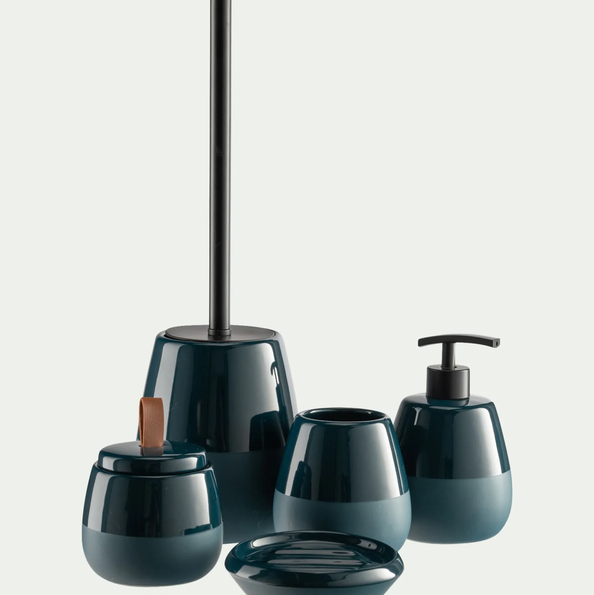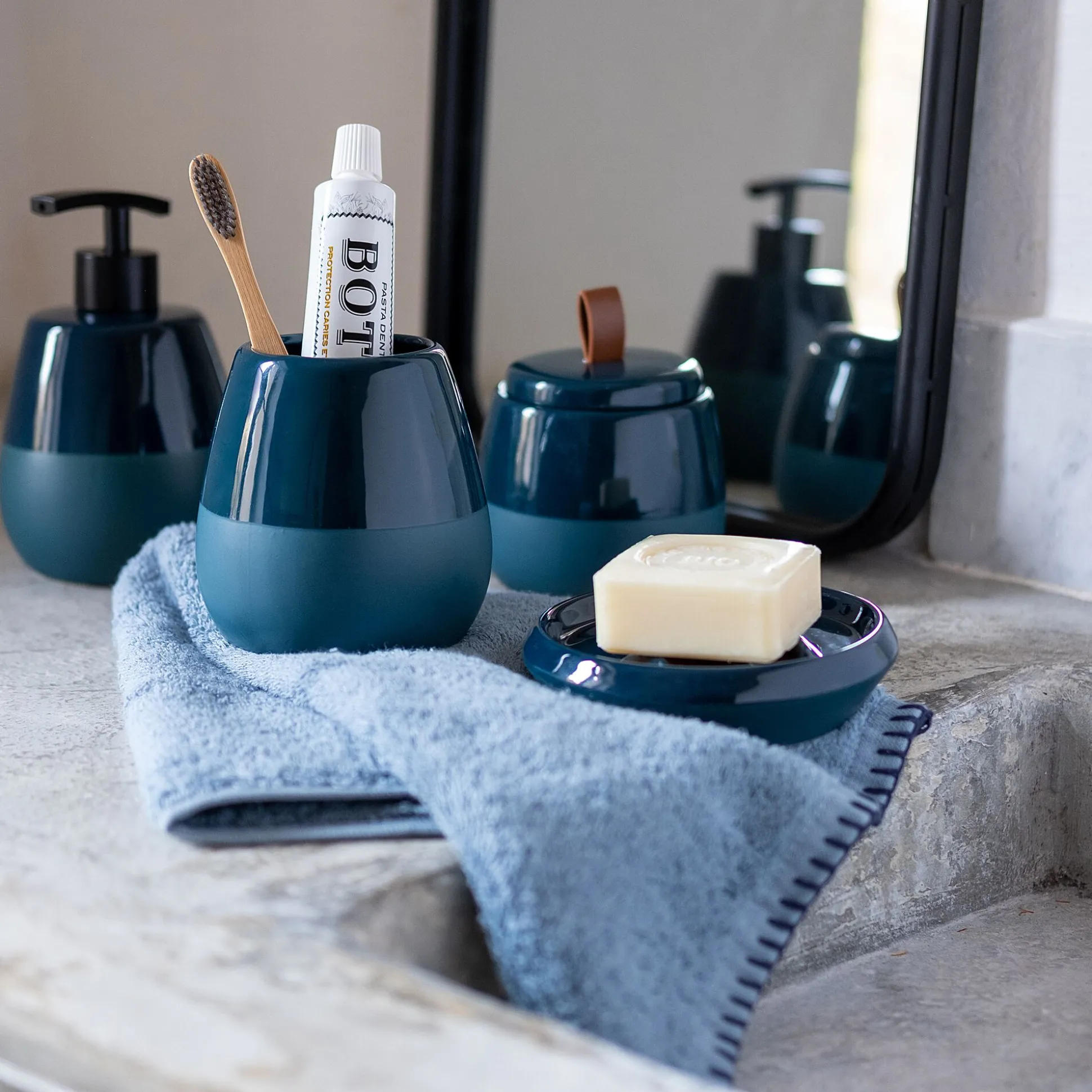 Ce set de salle de bain en grès apporte du charme à votre pièce. Il allie un design à la fois chic et moderne, de part sa couleur unique bleu figuerolles et originale, qui saura apporter une touche déco à votre douche. Pratique il est fait pour améliorer votre quotidien avec style. Cet ensemble se compose d’un distributeur de savon, d’un porte-savon, d’un pot à coton, d’un porte brosse à dents et d’une brosse wc pour créer un joli set de salle de bain. La gamme se décline en plusieurs coloris.