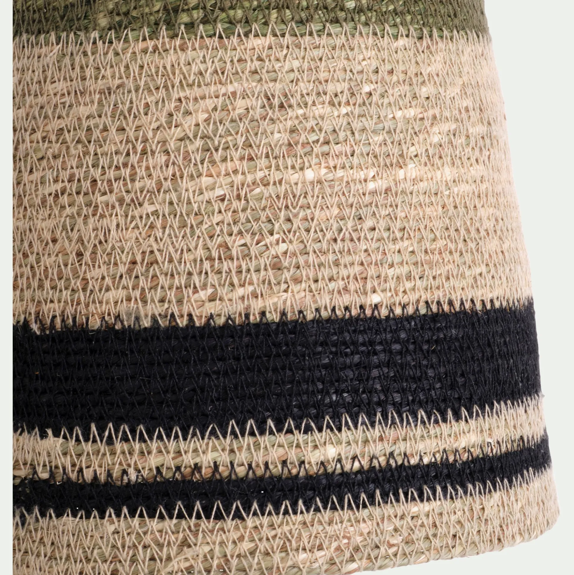 Découvrez cette petite suspension électrifiée tout en longueur, tressée en jonc de mer. Ces fibres végétales offrent une toile authentique et lumineuse, soulignée par un liseré rouge bordeaux au-dessus et un liseré noir au bas. On retrouve aussi du vert sur le haut de la suspension. Alors, ce mélange de couleurs fait de ce luminaire un véritable élément de déco pour votre intérieur. Cette suspension naturelle capture l’essence de la mer et diffuse un éclairage tamisé, comme un havre de paix et d’évasion. Cette jolie suspension en jonc de mer trouvera aisément sa place dans n’importe quelle pièce de vie. Souple, chaque abat-jour présente un galbe particulier qui peut être modelé selon vos envies.