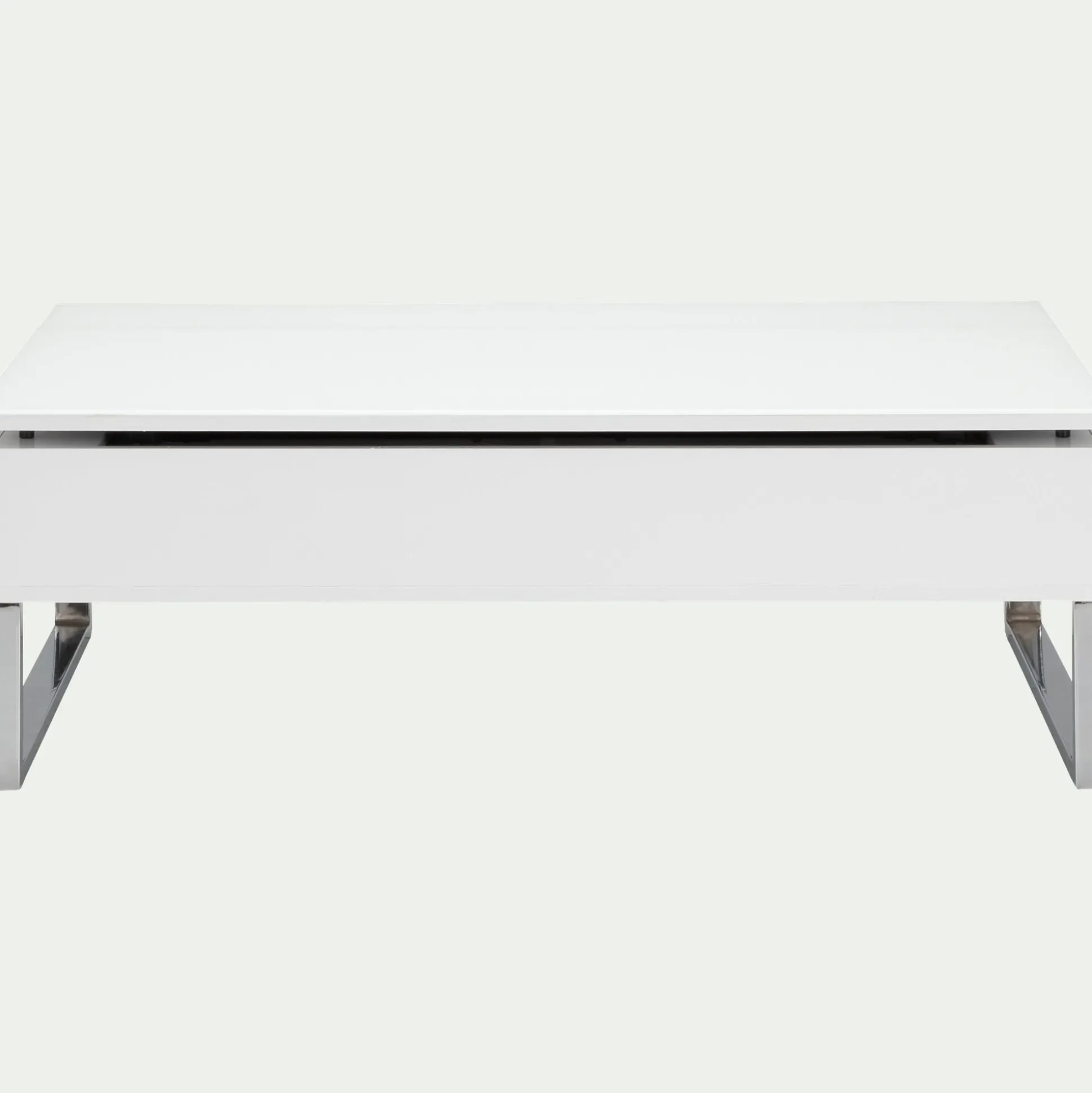 Cette table basse blanche avec tablette relevable vous offre un vaste espace de rangement très appréciable pour stocker télécommandes et magazines. En position haute, sa tablette fera office de table de repas pour 2 personnes. Ce meuble de salon est donc très pratique pour aménager les petits espaces de type studio ou chambre d’étudiant.