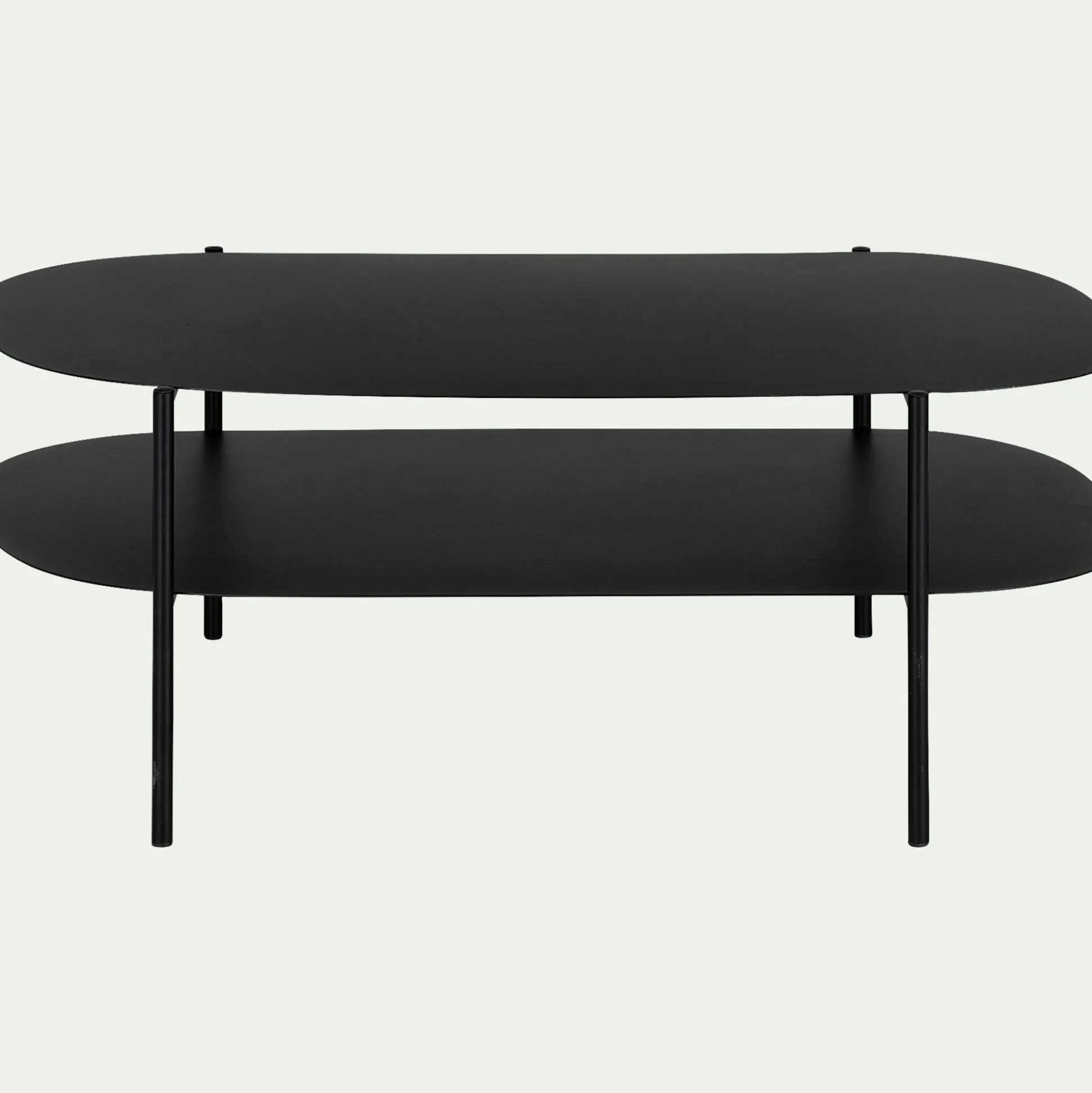 Cette élégante table basse en métal noire est idéale pour un salon moderne. Ses deux plateaux vous offrent un espace pour ranger vos effets tout en disposant d’une table libre au dessus. Vous pourrez ainsi profiter pleinement d’apéritifs dinatoires en famille ou entre amis. Une table au coloris noir mat et à la forme organique asymétrique qui arbore un style contemporain et chic. Elle saura être la pièce centrale de votre salon, trônant fièrement sur un beau tapis, face à votre canapé.