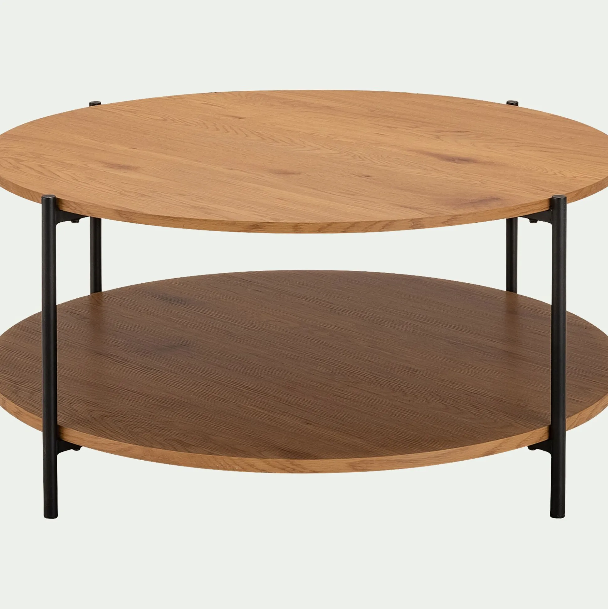 Table basse ronde en bois et acier – bois clair