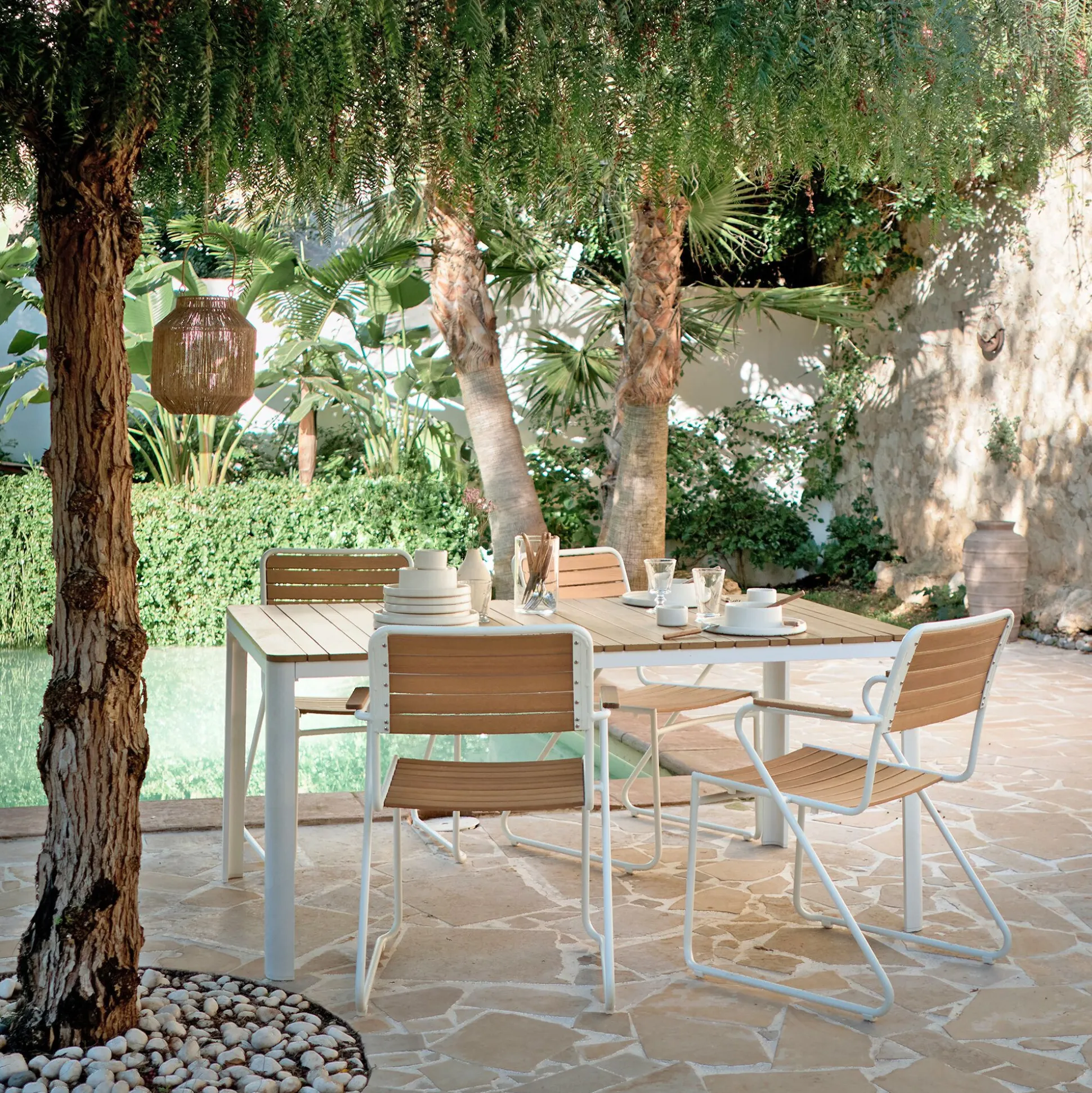 Table de repas jardin en aluminium et polywood- blanc (6 places)