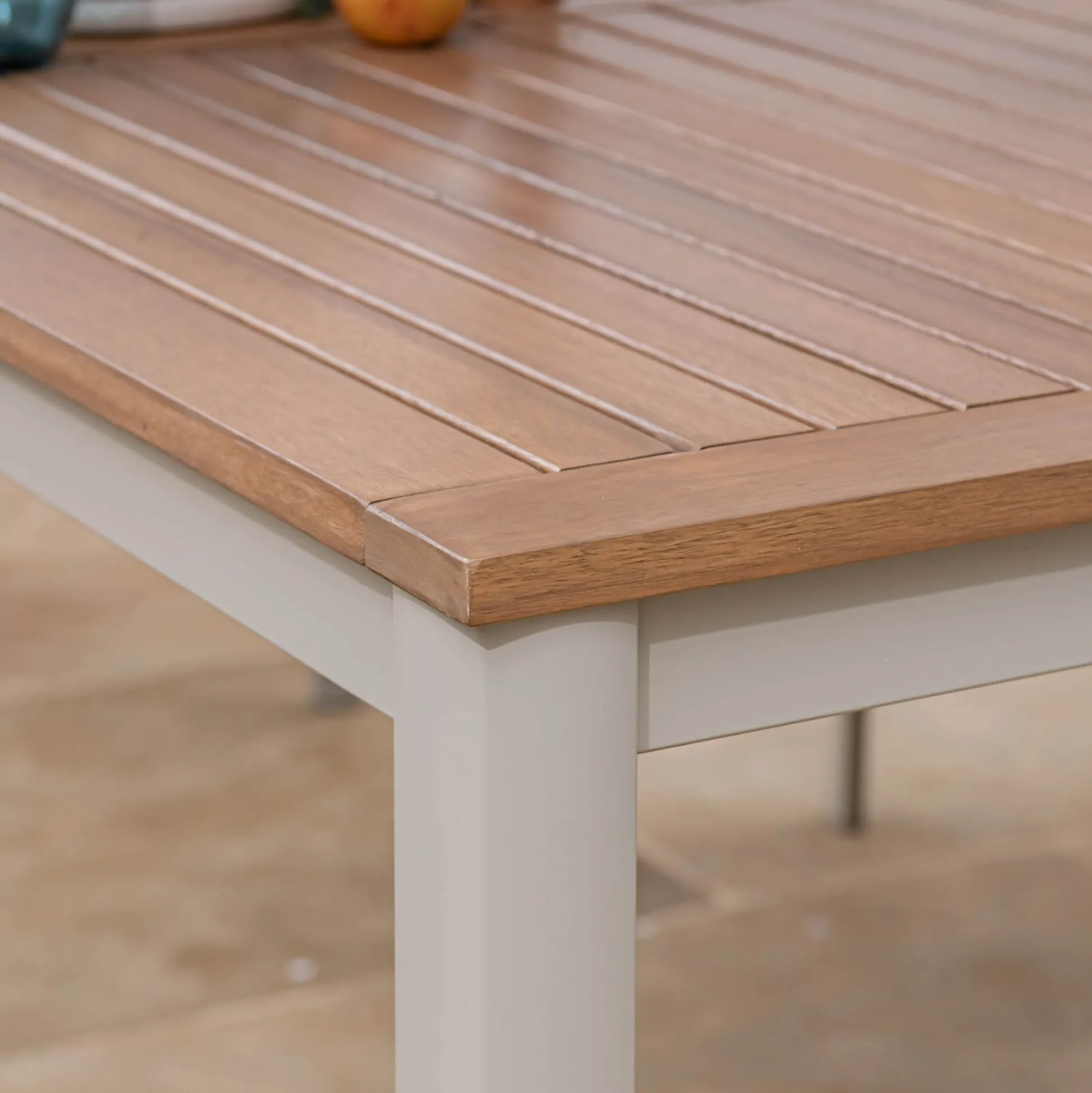 Le design intemporel de la grande table extensible de jardin Dole illustre la beauté du bois massif d’eucalyptus et trouve son élégance et la légèreté dans l’association de ses piètements en aluminium. Son style est particulièrement chaleureux et invite à la convivialité avec son allonge papillon qui permet de recevoir jusqu’à douze personnes autour de son grand plateau. Idéale pour les grandes tablées en famille ou entre amis pendant toute la belle saison.