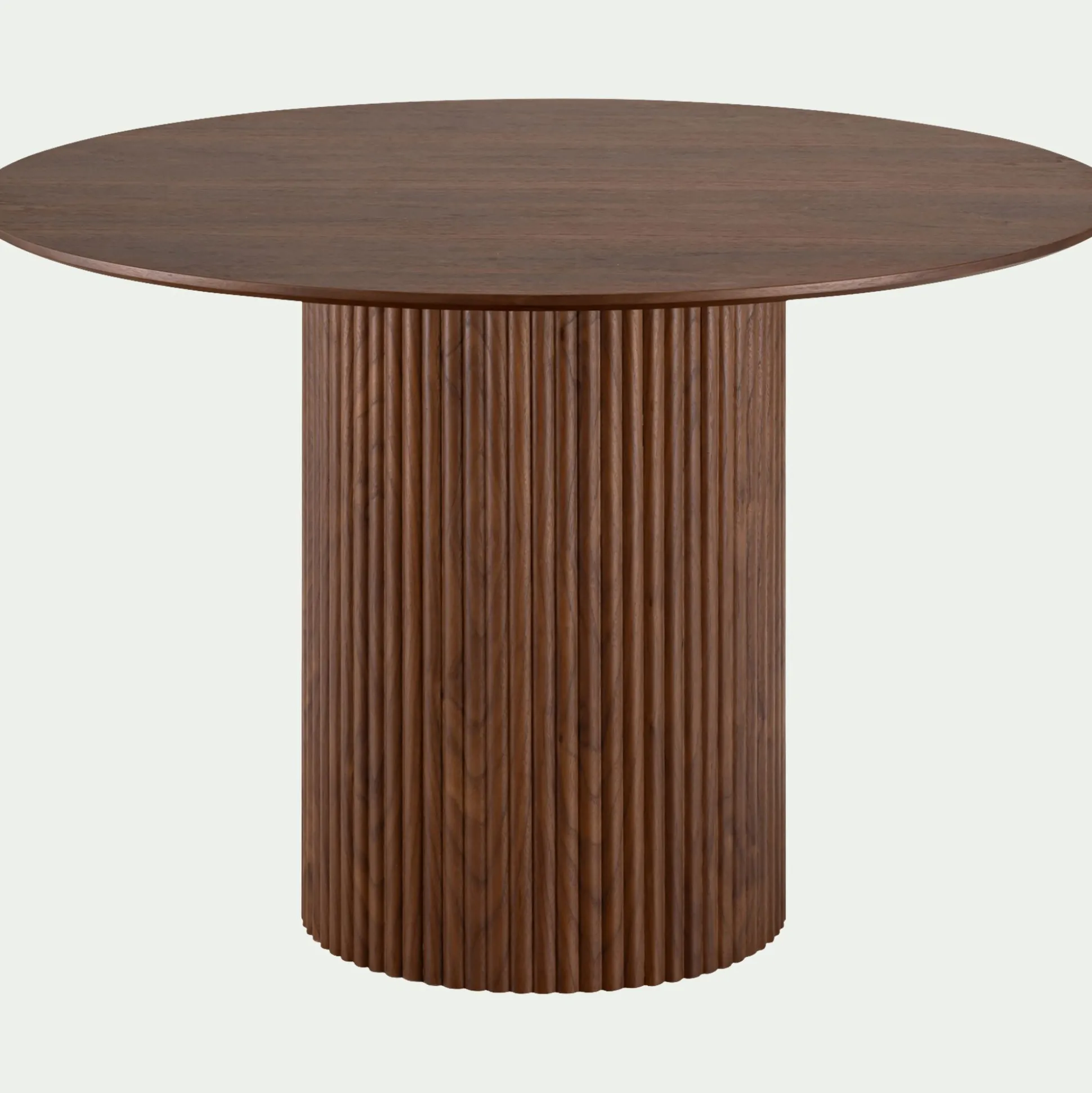 Cette table de repas ronde incarne l’élégance et la convivialité, offrant un espace harmonieux pour réunir 4 à 6 convives. Son bois foncé, certifié FSC, exprime un engagement durable et une beauté naturelle, tandis que le pied central, subtilement strié, apporte du relief et de la texture. Parfaite pour sublimer un intérieur contemporain, cette table ronde en bois allie la chaleur de la matière naturelle à un design moderne, créant un espace de partage de caractère.