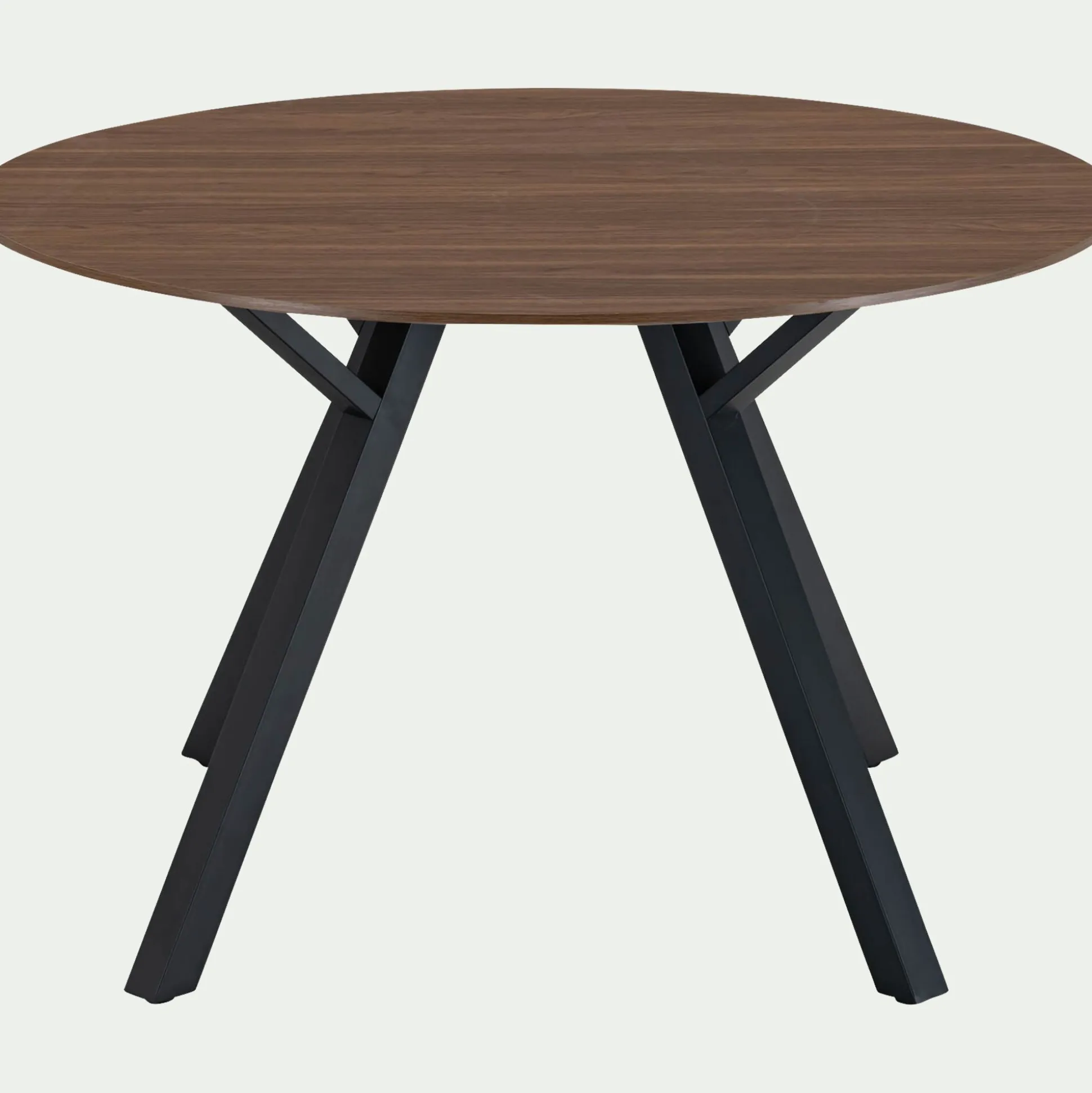 Avec son piètement en métal noir et son plateau rond en bois foncé de 120 cm de diamètre, cette table de salle à manger impose son style industriel. Sa palette sombre et ses lignes épurées créent une ambiance brute et contemporaine, parfaite pour un intérieur au caractère affirmé. Conçue pour accueillir de jusqu’à 6 personnes, cette table de repas allie convivialité et déco autour d’un design robuste et élégant.