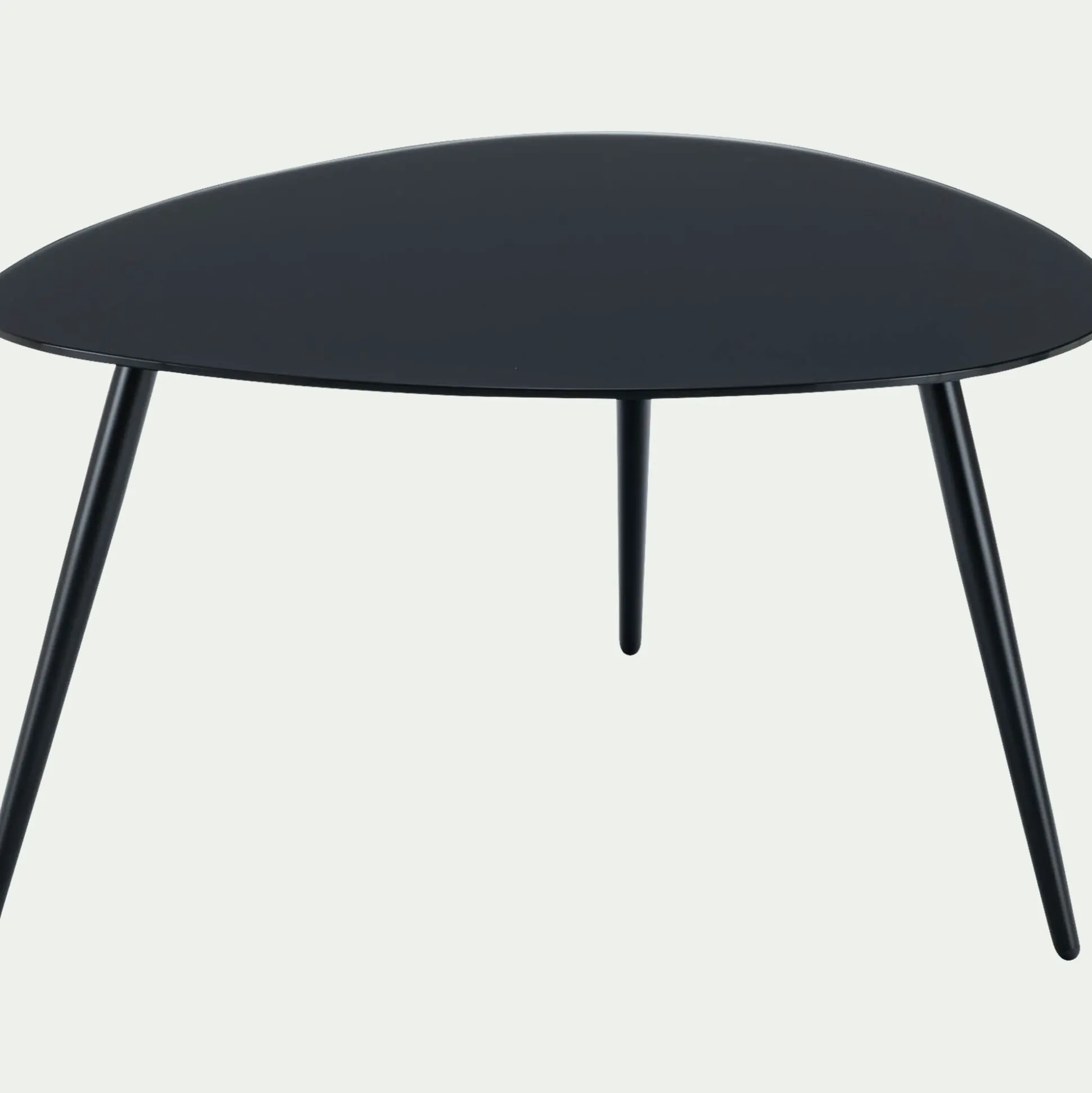 Envie de donner du caractère et du volume à votre salon ? Ces deux tables basses gigognes sont faites pour vous ! Leur look contemporain et brut, associé à un robuste piètement en tube en acier, en fait des pièces uniques. Chaque table est surmontée d’un élégant plateau en verre trempé avec une finition de peinture noire, offrant un design original et lumineux. Disposez-les harmonieusement sur un tapis devant votre canapé pour créer un espace convivial et profiter de moments agréables dans votre pièce de vie.