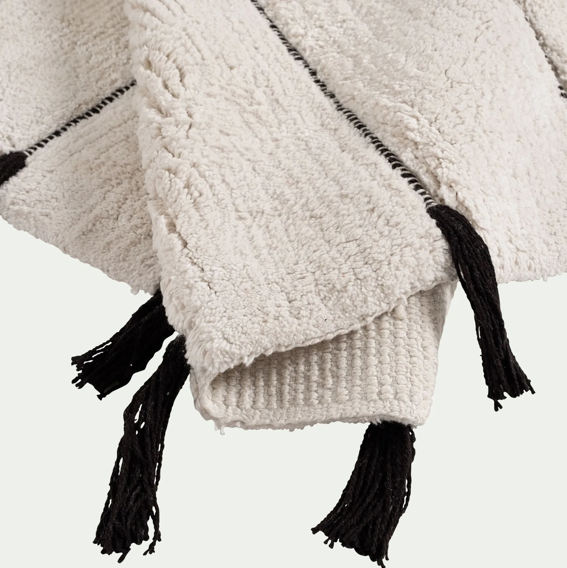 Gourdon est un tapis de bain intemporel, twisté par une petite touche contemporaine. Ce tapis de bain en coton arbore une palette de couleurs épurée. Grand classique, le noir et le blanc se marient à merveille pour donner du contraste à cette pièce. De fines rayures noires parcourent ce tapis de salle de bain. A la fin de leur chemin, elles éclosent en de gros pompons, touche fantaisie qui apporte du volume et du dynamisme. Ce tapis de bain noir et blanc est une décoration moderne, aussi esthétique que pratique.