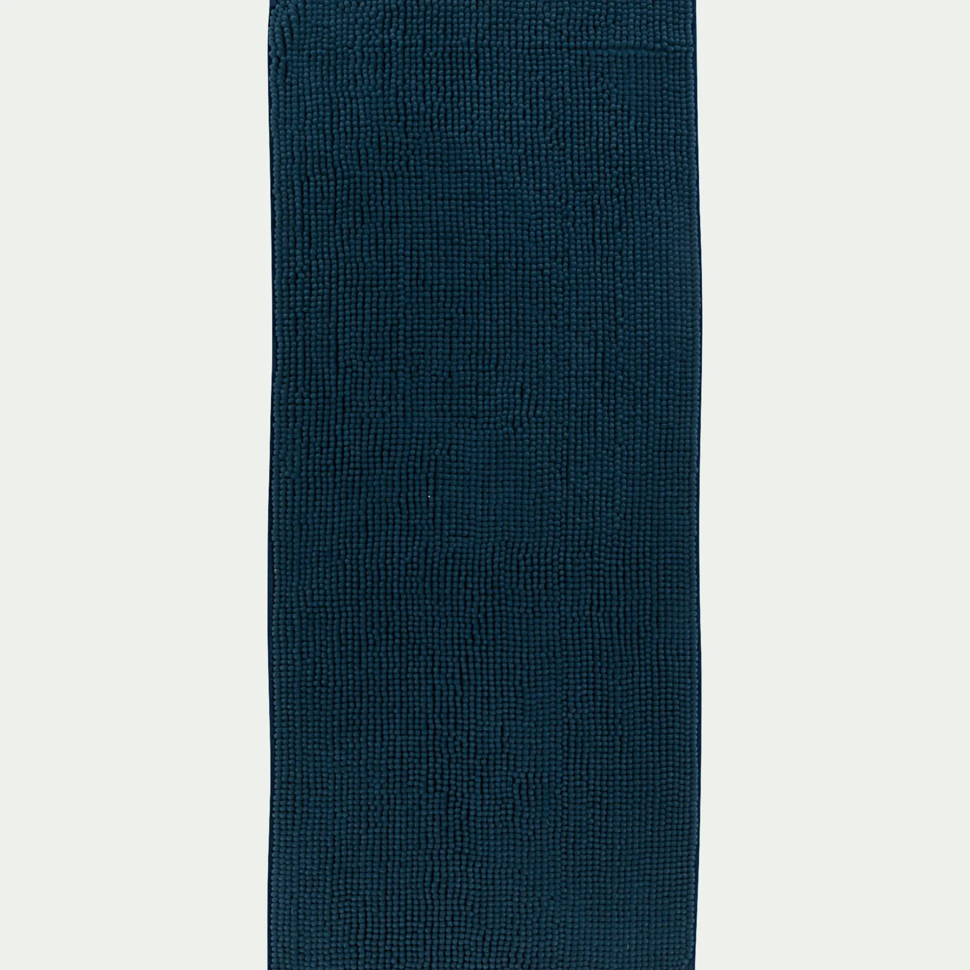 Ung grand tapis de bain à fois pratique et joli pour décorer votre salle de bain. Son tissage particulier vous assure une bonne absorption de l’eau et une agréable sensation au toucher. Antidérapant, vous pourrez sortir de votre douche ou de votre baignoire en toute quiétude. Un coloris bleu figuerolles qui souffle un air marin dans votre pièce tout en ajoutant une note colorée. Une jolie manière de protéger le sol de votre salle de bain tout en gardant vos pieds au sec.