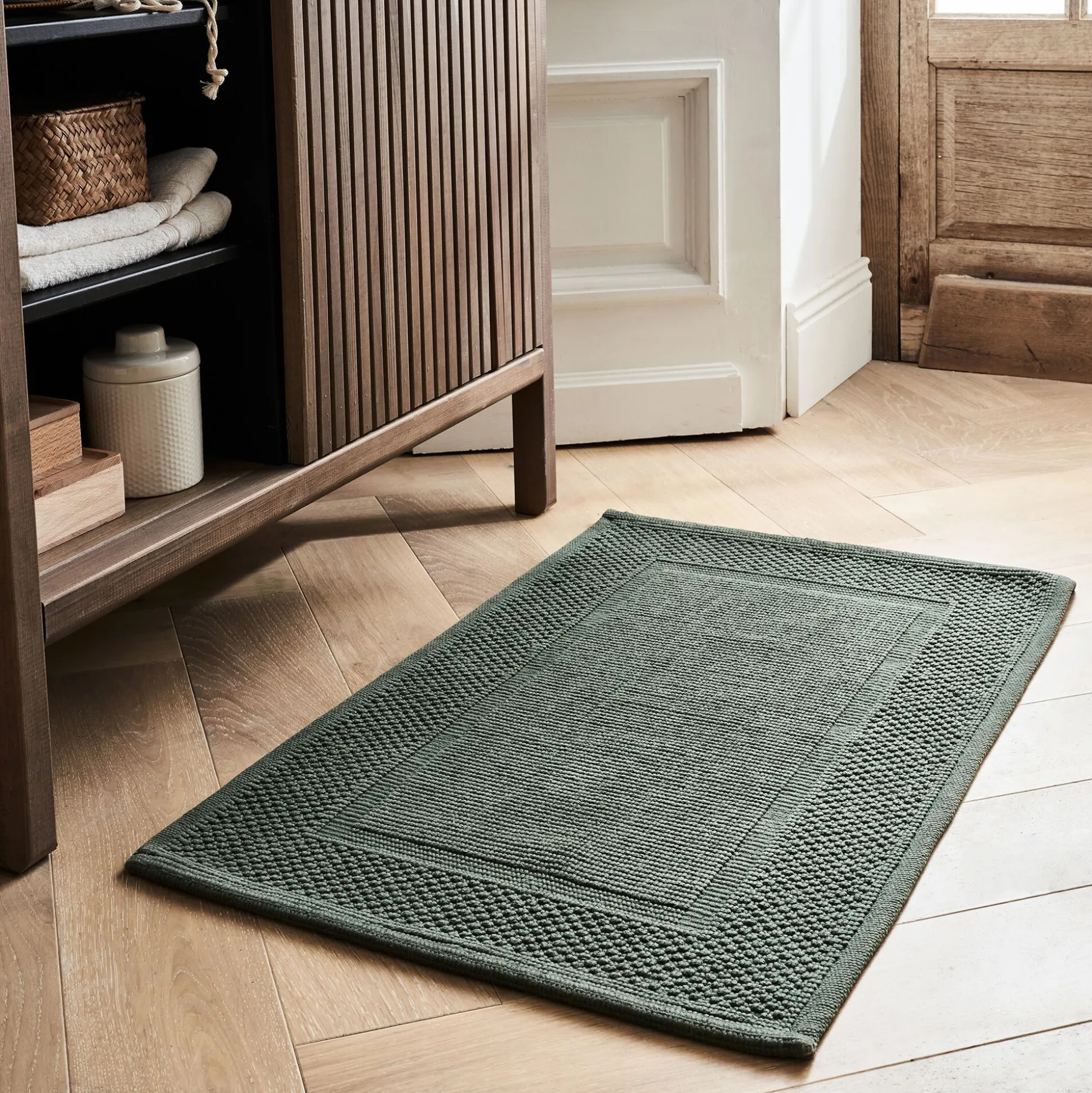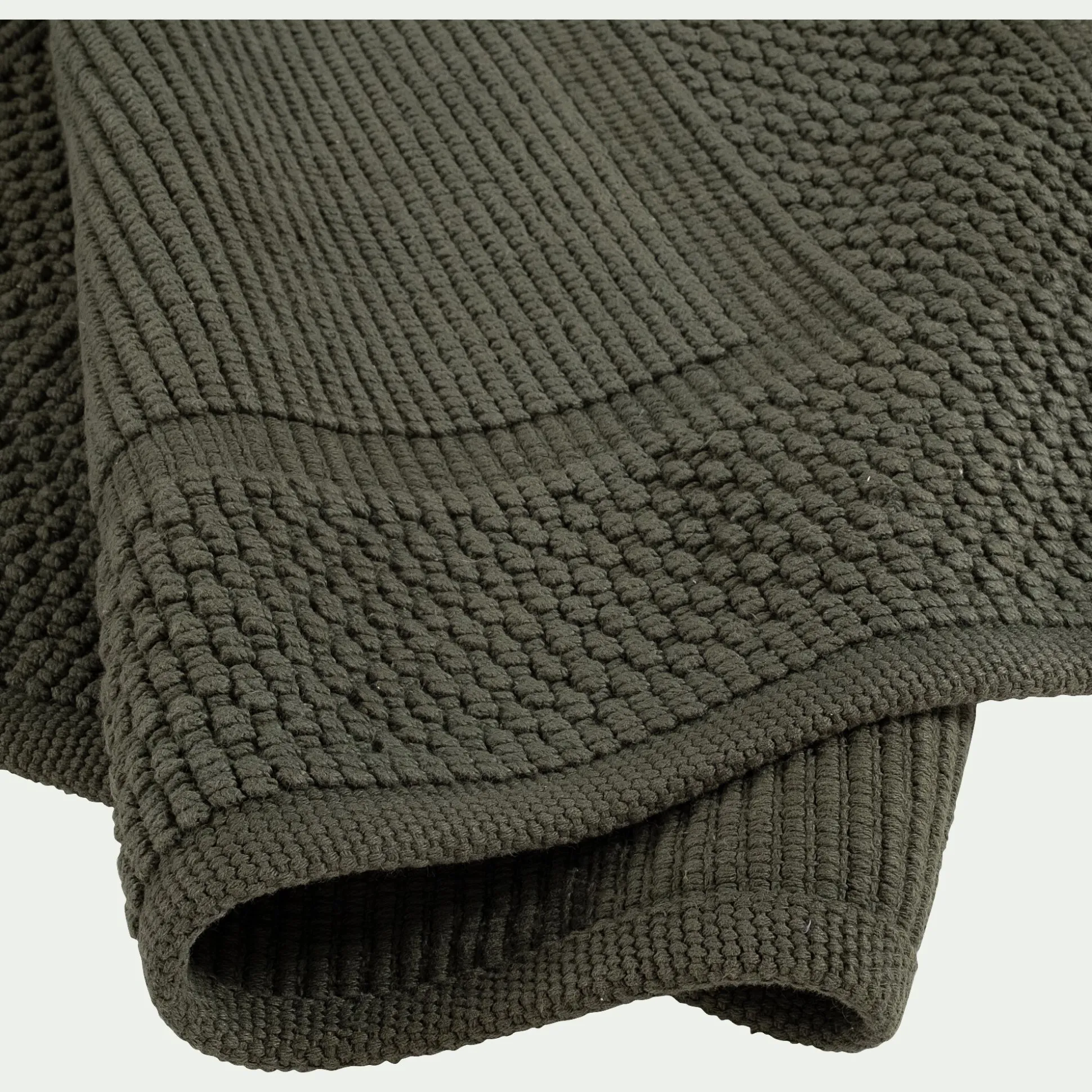 Avec son coloris vert cèdre, le tapis de bain Bagno participe à un style naturel et à une atmosphère zen. Au pied de la douche ou de la baignoire, il accueille vos pieds à la sortie de l’eau et les sèche rapidement grâce à son grammage de 1600 g/m2. Ce tapis de bain vert arbore un style monochrome, relevé par un tissage jacquard. De jolis motifs tissés viennent apporter texture et volume à ce tapis de bain en coton. Cette finition noble participe à un style cocooning, adapté à cette pièce dédiée au bien-être.