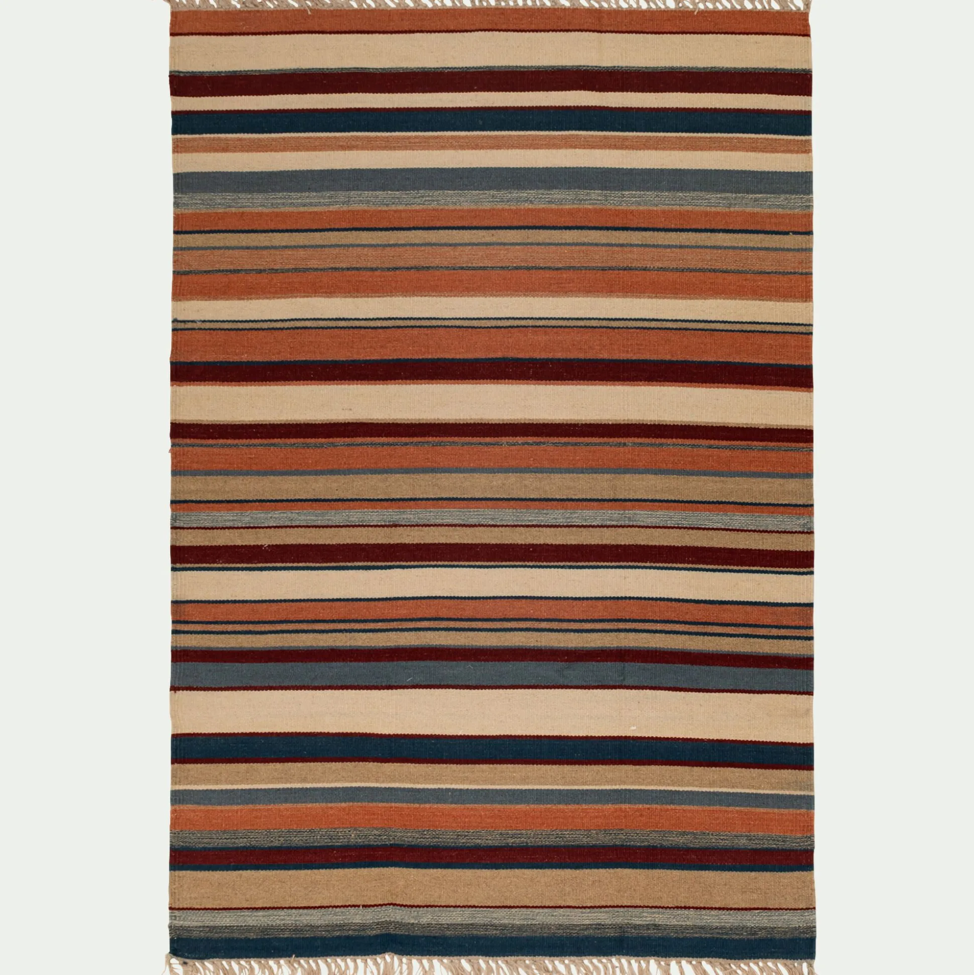 Ce tapis de 60×120 cm, confectionné en laine, offre un confort moelleux et une chaleur incomparable. Son motif à rayures dans des tons automnaux, comme le rouge, l’ocre et le brun, ajoute une touche vibrante à votre intérieur. Idéal pour une entrée, un coin de chambre ou au pied du lit, il apporte douceur et style. Accueillant, ce petit tapis en laine est un accent décoratif parfait pour réchauffer l’atmosphère tout en restant élégant et intemporel.