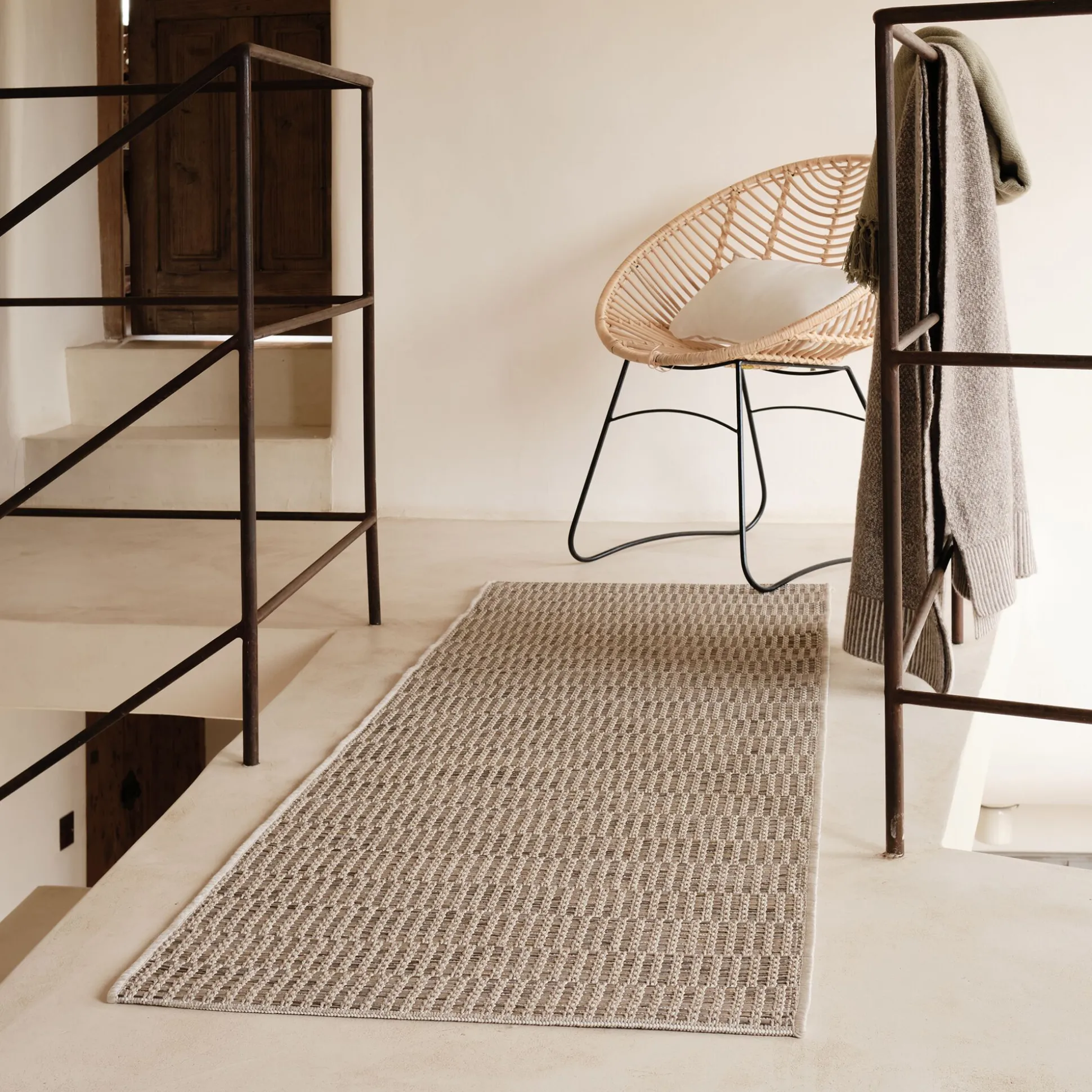 Un très beau tapis tissé plat de haute qualité, en 200×67 cm qui propose un look sisal absolument intemporel. Ce tapis rectangulaire et fabriqué en Belgique, est d’une très grande qualité. Il trouvera aussi bien sa place dans votre intérieur que dans vos espaces extérieurs. Tout en longueur, il convient parfaitement comme tapis de couloir. Très facile à entretenir, il est lavable à l’eau et au savon.