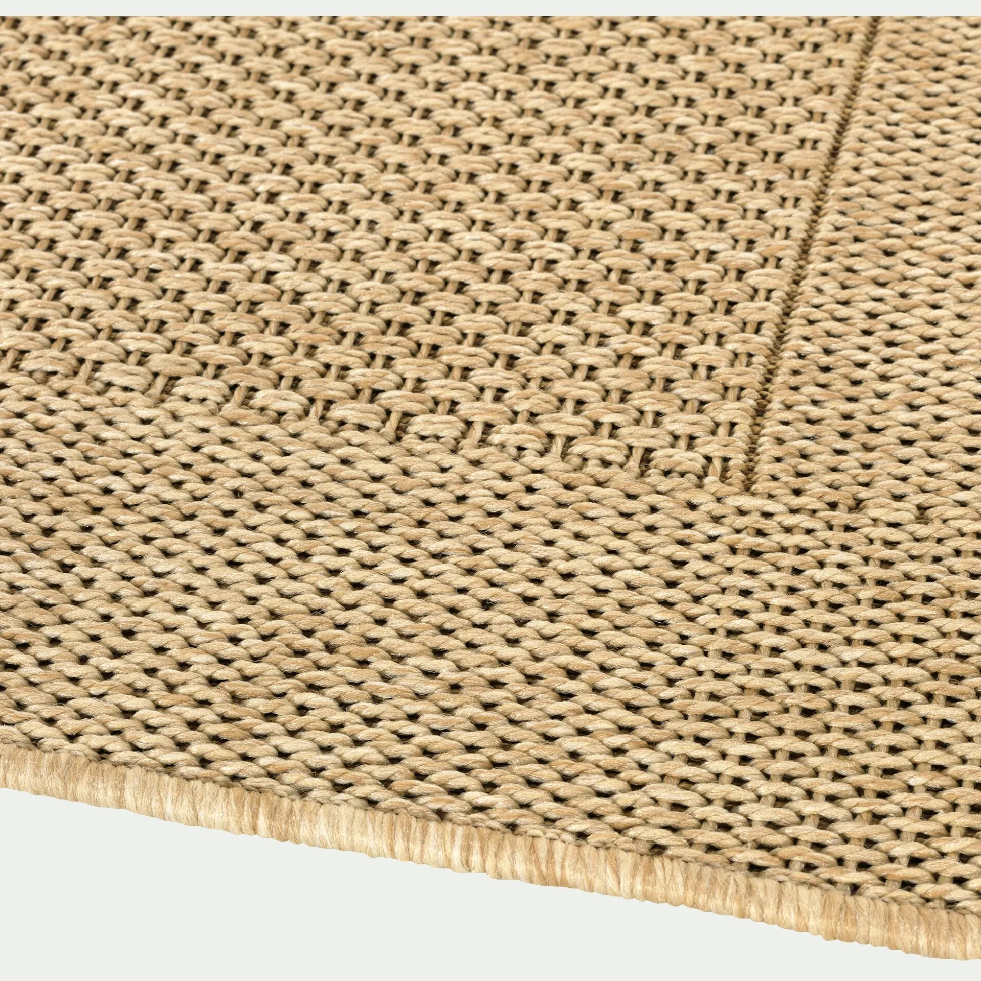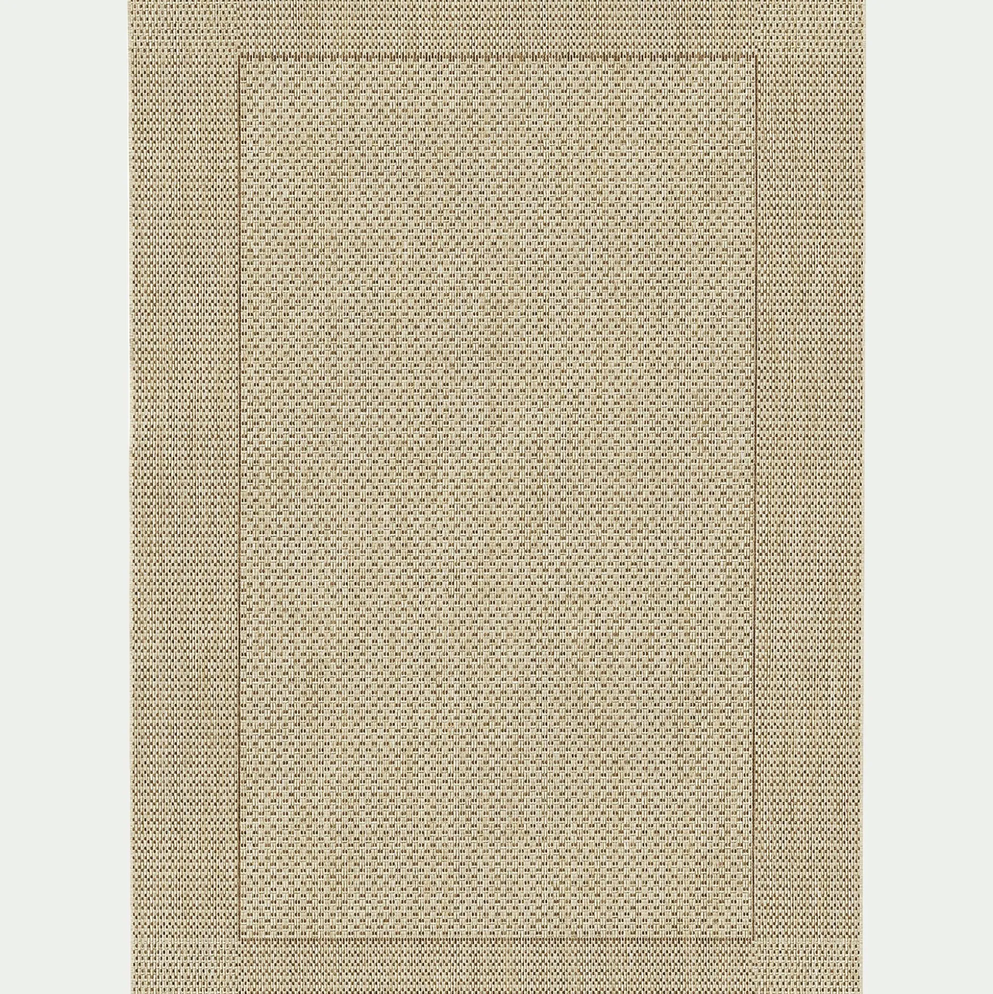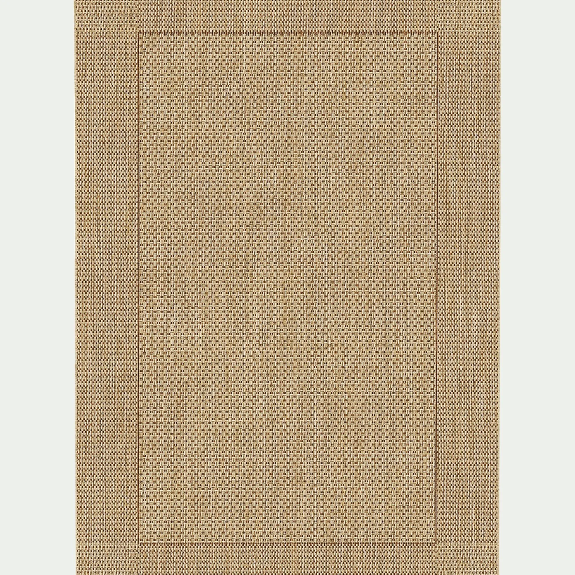 Un tapis qui s’adapte aussi bien à une utilisation intérieure qu’extérieure en 120x170cm au coloris miel résistant aux intempéries pour décorer votre balcon ou votre terrasse ! Ce tapis tissé plat en fibres synthétiques propose une très belle imitation du sisal, facile d’entretien, et extrêmement solide, vous pourrez le nettoyer à l’eau. Il habillera votre sol avec élégance pour un rendu naturel.