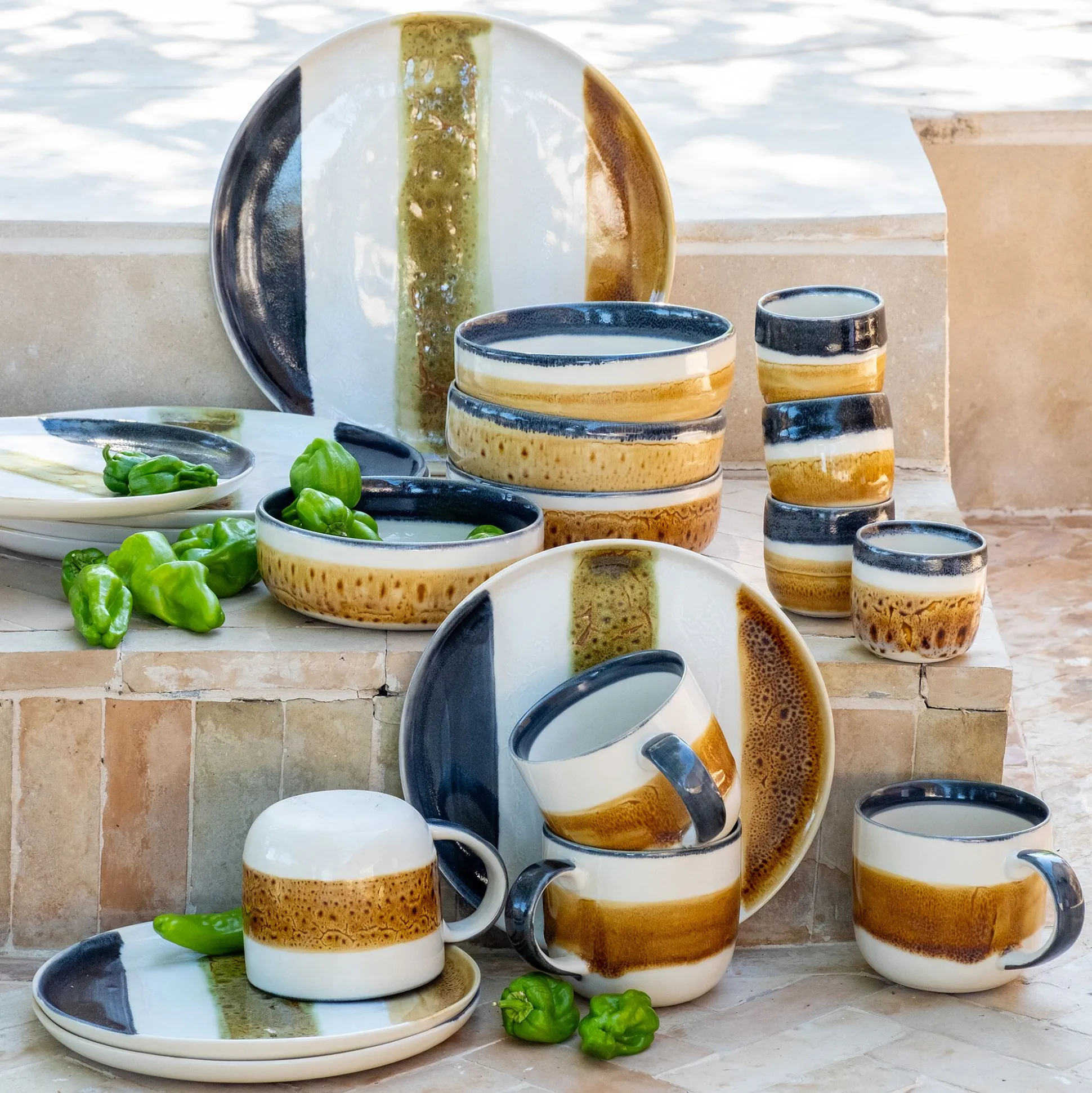 Cette tasse à espresso de 12 cl adopte une silhouette épurée en forme de gobelet, sans anse, pour une prise en main directe et contemporaine. En grès, elle séduit par sa texture naturelle et sa solidité. Son charme réside dans son motif peint à la main : des aplats de couleurs aux nuances riches et subtiles qui révèlent un charme authentique. Une pièce unique et expressive, idéale pour savourer un espresso avec style.