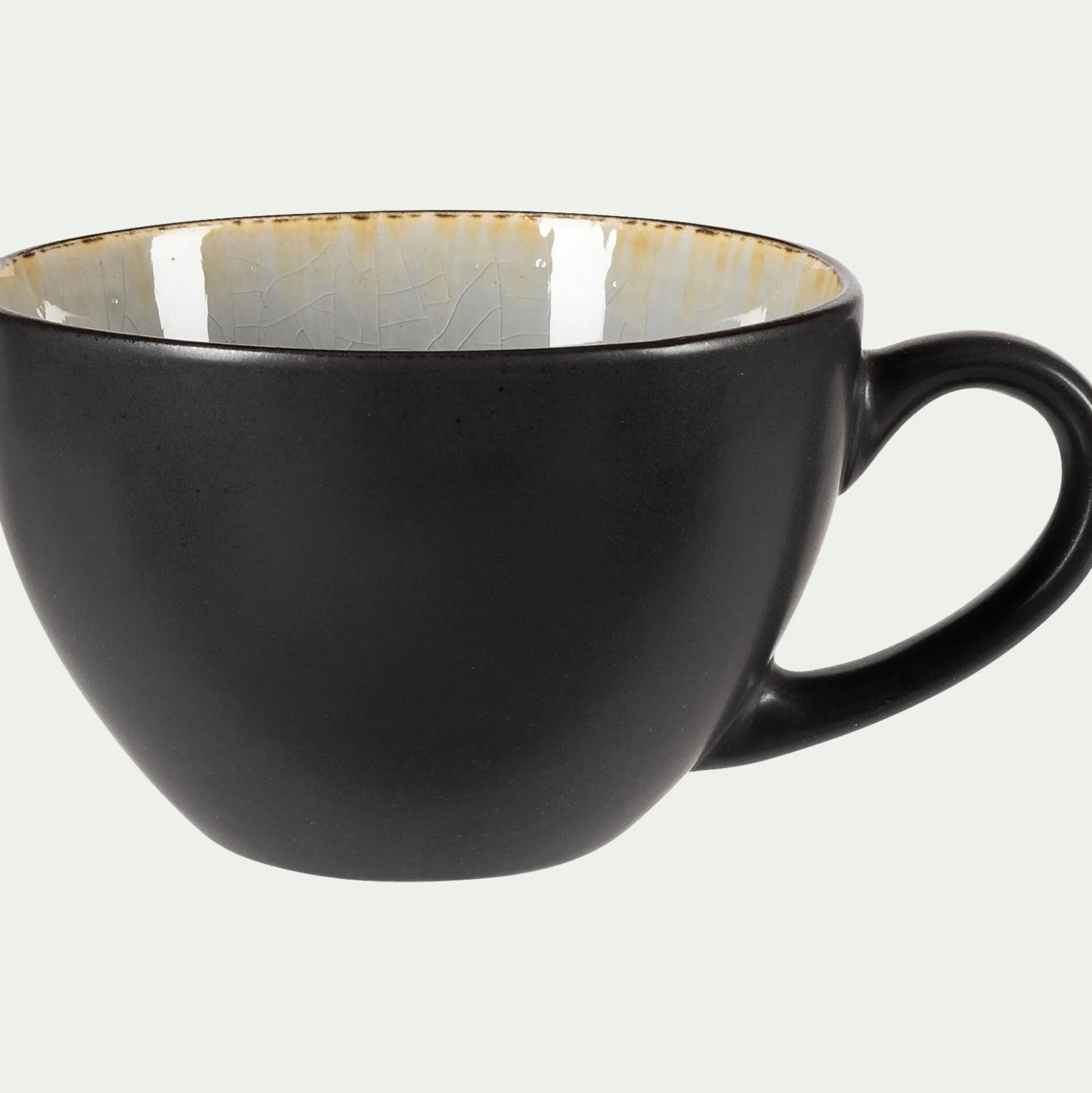 Café, tisane, chocolat chaud… Servez vos boissons chaudes dans la tasse Selime, une création en grès qui apporte une touche contemporaine à l’art de la table. Cette tasse en céramique arbore un design traditionnel, avec des courbes et une anse arrondis. Sa sous-tasse vient rompre avec ce côté classique en présentant une forme organique, très tendance. Cet ensemble de tasse et de sous-tasse en grès affiche un beau coloris gris profond, sublimé par un émail réactif brillant rendant chaque pièce unique dans ses détails.