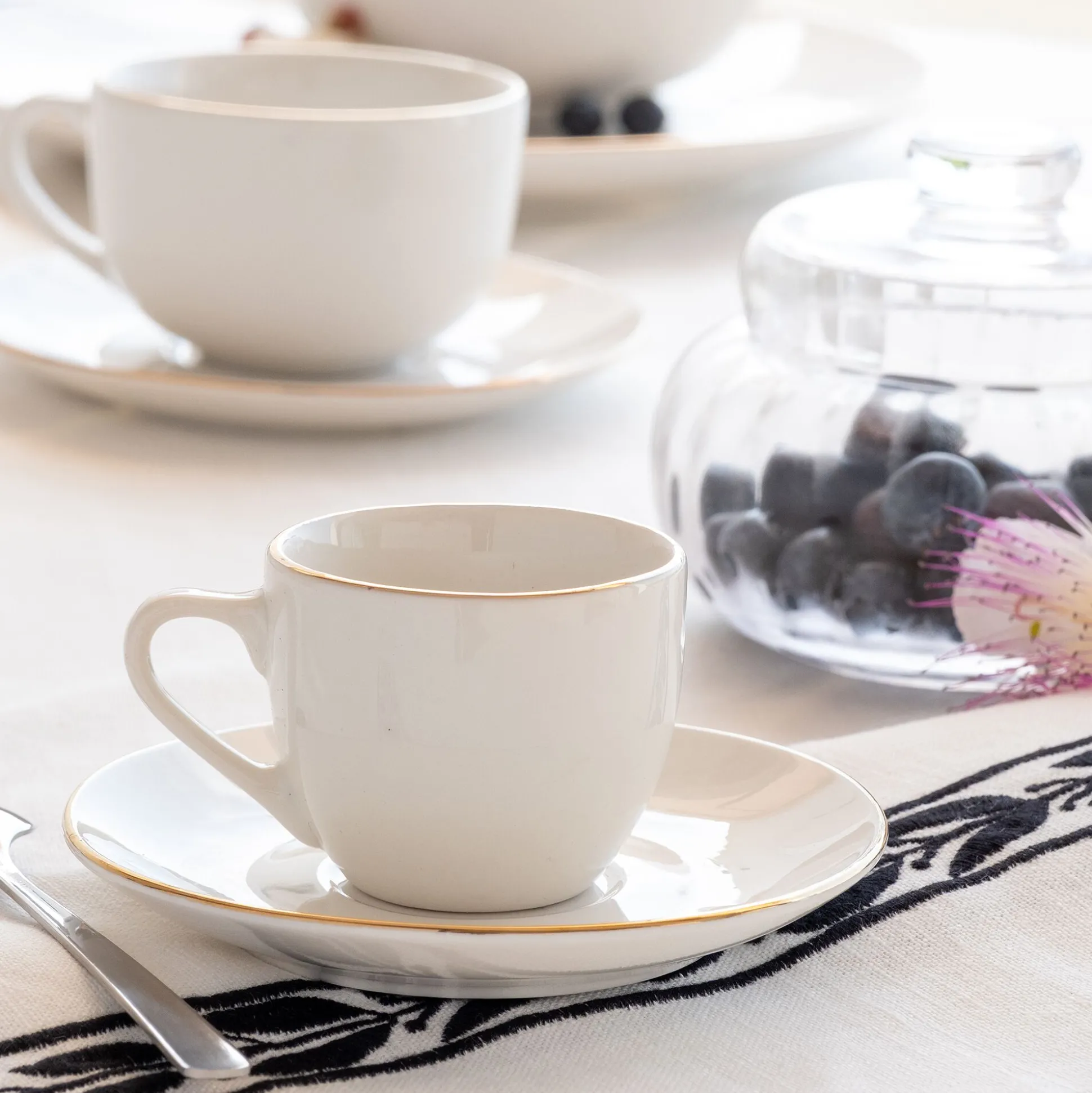 Tasse et sous-tasse en porcelaine avec liseré doré D8cm – blanc